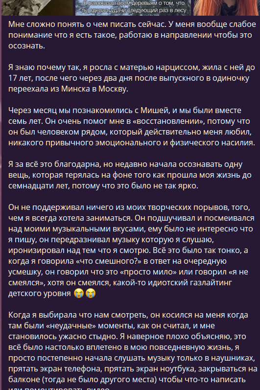 >>6445662 О, я видела ее тикток на несколько частей более полу года назад, хз почему ты самую мягкоту не принесла, где она через несколько дней после расставания пришла в их бывщую общую квартиру за вещами, а бывшая ее пидружка сидела в ее же вещах)) Недавно смотрела на ютабе обзор на фильм, и она там рассказывала, что как бы мы не дружили с кем-то и не открывались на сто процентом, мы никогда не знаем, чем будет руководствоваться человек, с которым мы откровенничаем, зачастую если у друзей все хуево, а у тебя все хорошо, они неосознанно начнут своими советами или действиями портить тебе жизнь. Я думаю с ее пидружкой вышло так же, она просто хотела занять ее место, ей двигала зависть, это пиздец если так подумать, ни с кем нельзя быть на стопроцентов откровенной