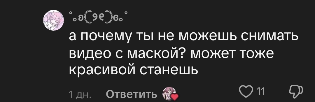 Блять ну когда это сделает ребенок старик любой человек НО НЕ ТВОЙ ПАРЕНЬ это пиздец мило. А так только жалость к тян появилась. Коммент от парня вообще жалкий пиздос