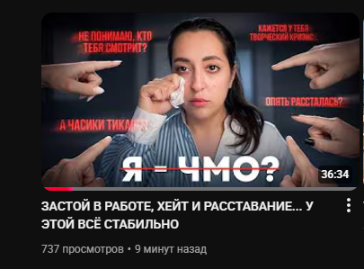 У всраток, которые одинокими листвами 20+ были одинаковый паттерн поведения, что у лизы охотницы, что у светусика, потешная озабоченность отношашками драматическая, хотя эту хуйню еще в подростковом возрасте переживают и тогда не так кринжово выглядит, все таки каждый этап должен по возрасту проживаться