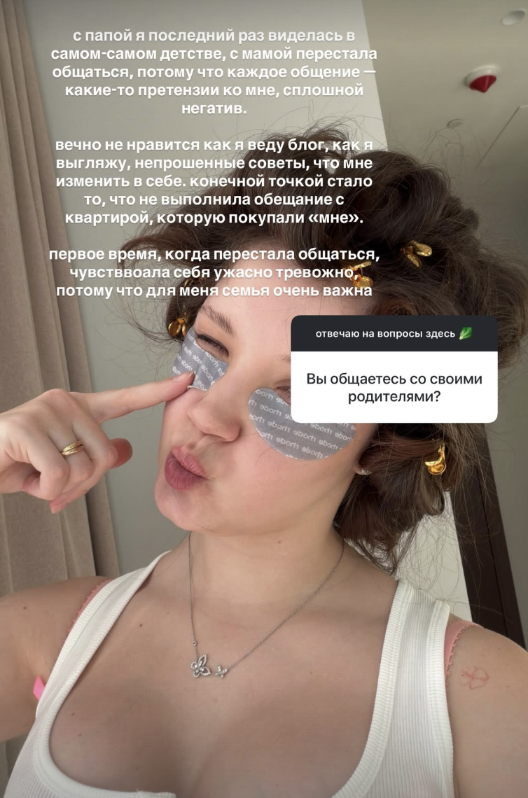 У Ебелины тоже ж с матерью не всё гладко (с отцом понятно, там и подавно). Что-то перевезла её в Спб и опять как будто бы разошлись. Уже в годовалом вопрос-ответе говорила, что не общается с родственниками. Хз, входит ли туда мать или чисто со стороны отца нн, типа сестры и т.д.