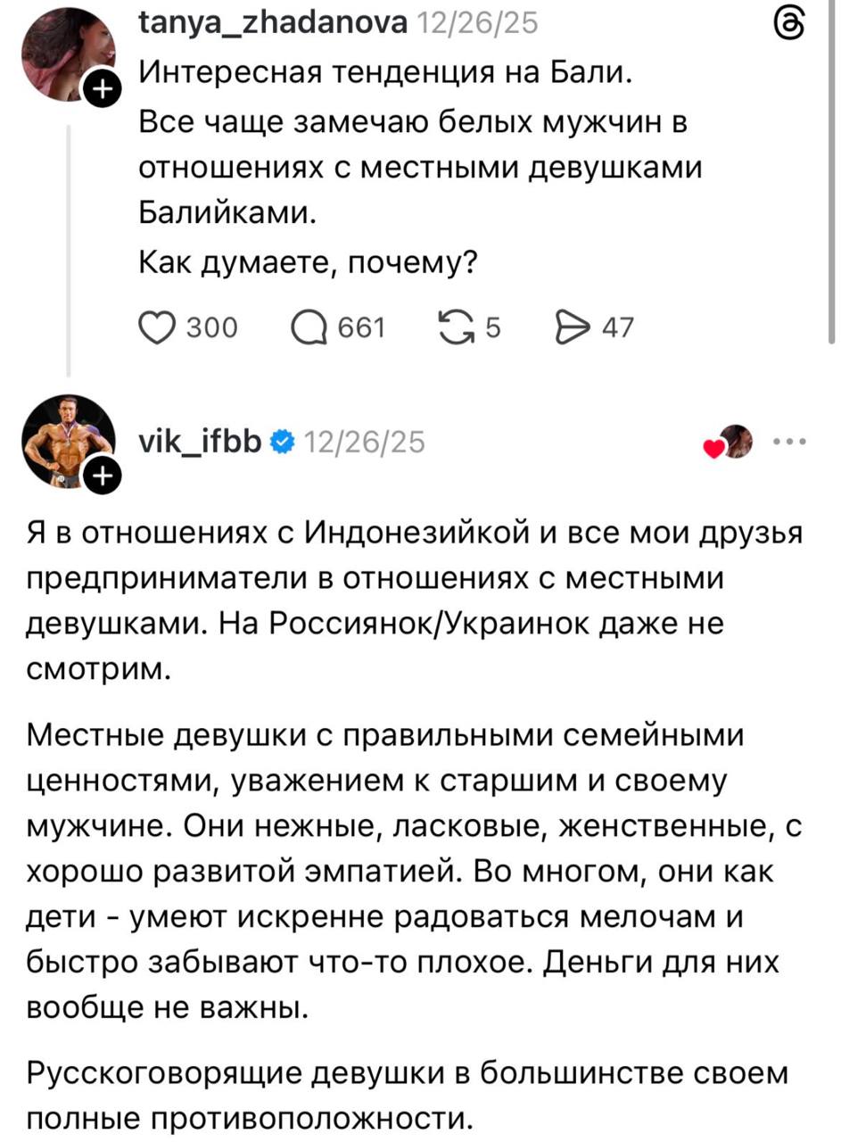 >>6460969 В принципе я видела треды в твиттере, где япошки принижали своих женщин и фапали на европеек, а европейские виабу фапают на японок, у китайцев есть фетиш на славянскую жОну, а Ваньки мечтают о китаянках и превозносят их. Ну просто у всех есть убеждение, что чужое всегда лучше, чем свое. В принципе мне бы хотелось чтобы и тяны, и куны геомаксились, но в «более близкие для себя культуры», если вы понимаете. Но в этих культурах обычно не будут тебе сасать на первом свидании из-за того, что ты просто белый, поэтому мужики редко идут этим путем.