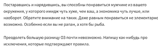 Но если рассуждать вот так прагматично, бесплатного секса даже для красивых мужчин, например, не существует. Опять же, если выйти из маняфантазий двачеров про 5% сверхчеловеков.