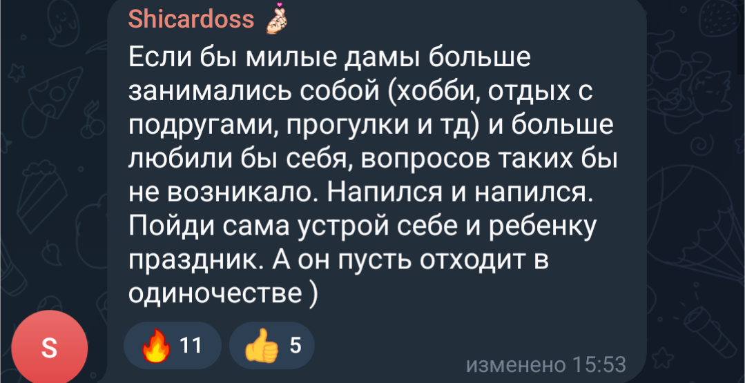 И ты будто никогда не была в женских коллективах, где если ты не вписываешься в повесточку здешних змеюк, то тебе начинают подсирать методично, пакостить.