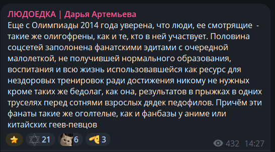 в темах, которые обсуждает, она явно не разбирается, хватает по верхам и очень много и уж очень явно заигрывает с чушиной аудиторией. как контент мейкерша - ок, но это явно не та, к чьему мнению стоит прислушиваться