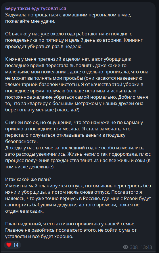 >>6464812 и что поменялось в ее жизни от расставания, если она и раньше деньги в общий бюджет сливала? вот у меня после расставания с айтишником реально жизнь стала финансово посложнее, поскольку я никогда свои деньги почти не тратила, все копила, он обеспечивал меня полностью, несмотря на то, что оба работаем. Привыкать снова тратить свои деньги очень тяжело