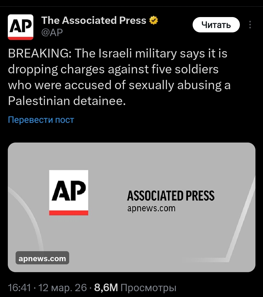 О, Израиль первый раз будет расследовать случай сексуального насилия со стороны своих солдат. Изнасилован был мужчина заключённый тюрьмы. Изнасилование попало на камеру. Женщина которая возможно имеет отношение к сливу ролика уволилась из военной прокуратуры.