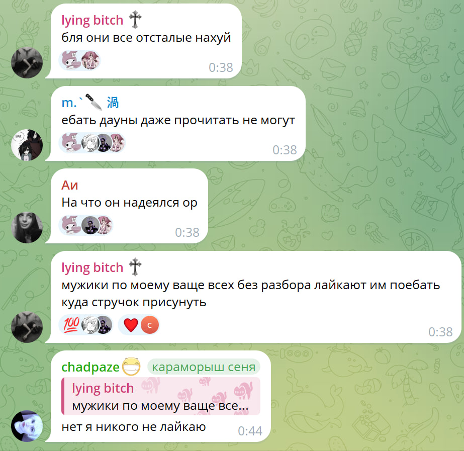 Если у вас какие-то манямечты о том, что чушатина в пендоссии какая-то золотая, то пиздуйте читать кристал.кафе и форч, где мизогинной хуйни столько же, если не больше.