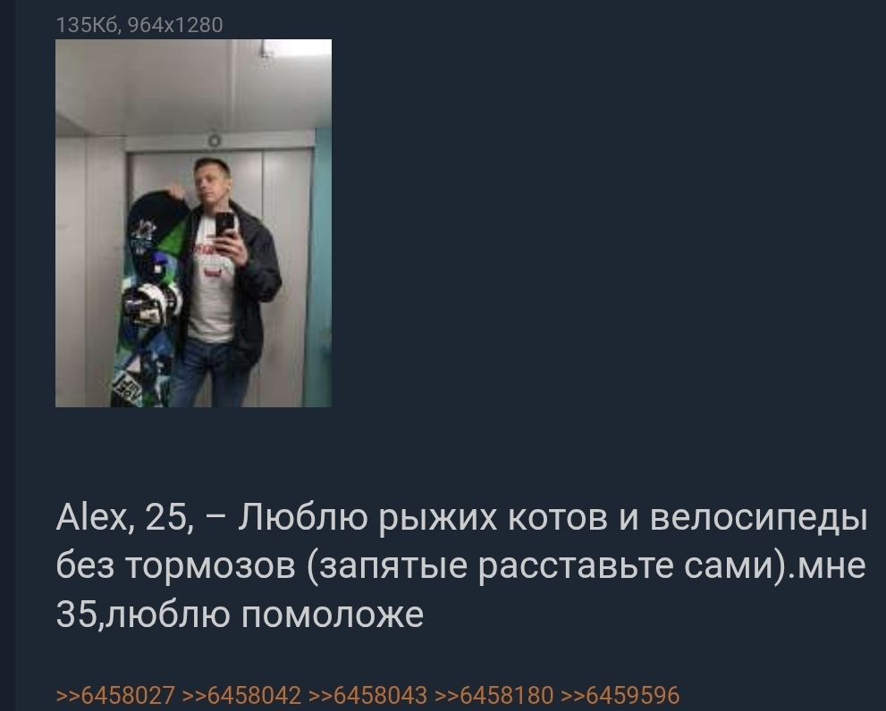 >>6470434 Справедливости рад, если поставить возраст 35, то у меня в полумиллионнике 110 анкет (винчик периодически пишет, что нашел столько-то анкет в твоем городе), а если 30, то 240 анкет. А если 20 лет поставить, то вообще под 3000 анкет. И вот из этих 110 тебя одни и те же по кругу лайкают десятки раз.