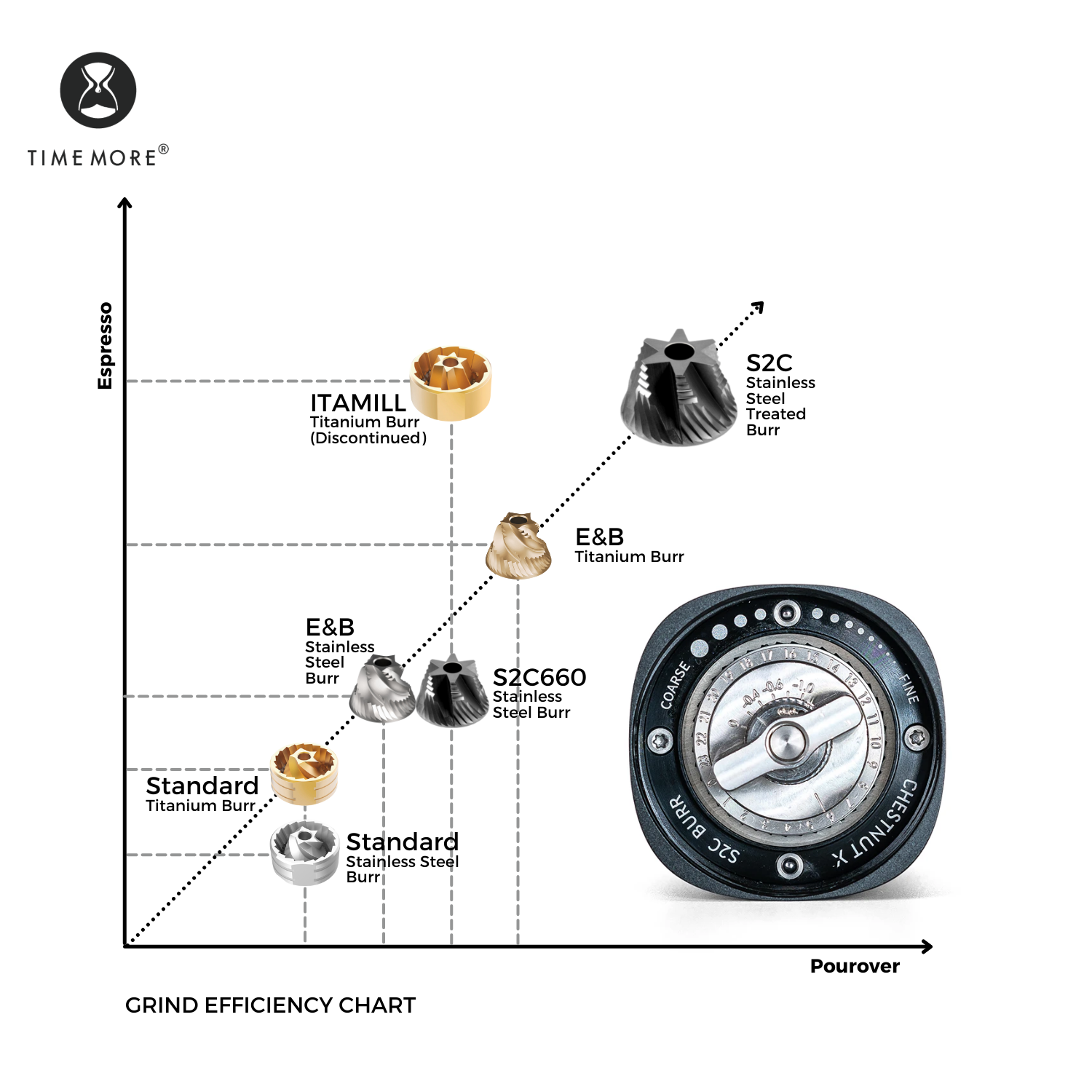 Кофемолка Фильтр • Timemore Chestnut C3 ESP – дешево и сердито • Timemore Chestnut C5 ESP – вышла недавно пока маркетологи нам методички не обновили, но похоже получше С3 и не сильно дороже • Таймморов как собак нерезанных, X-Lite, S3 и другие буковки C3/C5 тоже нормальные. • Kingrinder K6 годнота • Comandante С40 mk4 – бывший эталон кофемолок, но теперь ему уже на пятки наступают китайцы, а стоит он всё так же как электрическая