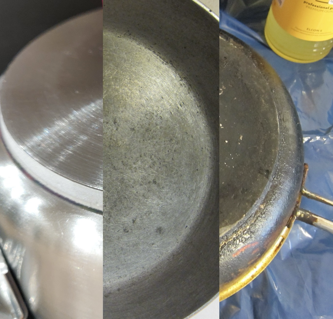Пикрил – сотейник с алюминиевым дном. Оно от обычной химии пошло по пизде, тут явно видно что миллиметр где-то стравлен. На цельных сковородках такое сложнее заметить, она у тебя равномерно вся тает.
