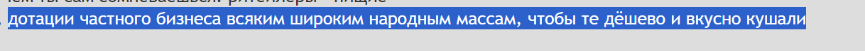 >>735344 >>735409 Додики, спокнитесь. Тут выше был высер про ря магазины нищебродам еду дотируют. Ага, дотируют. Картошечку в закупе по 40 продают за 150. Про какие-то товары не первой необходимости я даже писать блять не буду.