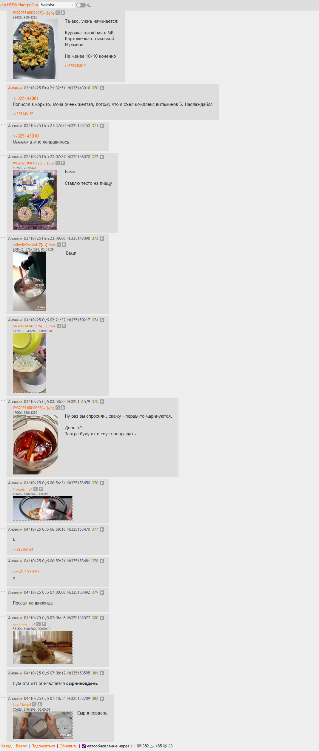 >>745144 ТЫ УСПЕШНЫЙ МАМКИН ПОВОР @ МАРИНУЕШ КУРОГРУДКУ СУТКАМИ НАПРОЛЁТ @ ВАНЬКА ПОКУЕТ В АПТЕКЕ ШПРИЦ, ТЕРИЯКИ 365 ДНЕЙ В ПЯТЁРОЧКЕ И ОБКАЛЫВАЕТ ТУШКУ @ ЖАРИТ ЕЁ В ДУХОВКЕ ЧАС НА 180, ЕОТ ОТДАЕТ СВОЙ ГОЛОС ЕМУ @ ЕРОХА СНОВА ЖАРИТ ЦЕЛЫЙ ЧАС С ЧАСТОТОЙ 180 @ НО НЕ КУРИЦУ