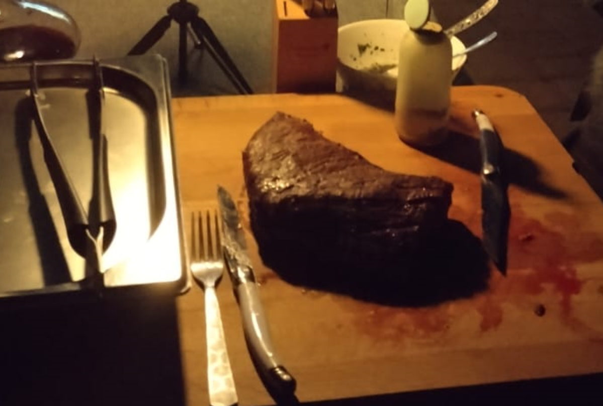 >>750979 Блин, анонче, не пойму от чего у тебя так подгорает. В шапке тонкие куски после отдыха в фольге, из них течет сок, поэтому так выглядят. На фотке с "торшером" это просто кроп, темно и плохое освещение, и там я фоткал не мясо, но не суть, что ты там нашел обугленного, мне не понятно, корочка там присутствует, прожарка медиум, она не размокла потому что ничем не накрывал, было тепло, после сувида мясу можно не отдыхать. Все мега сочно и мега вкусно. Готовлю так как мне по кайфу. Я не фанат жесткой корки, не фотограф, если и фоткаю то больше для себя, цели получить, идеальную картинку нет. Красивые фотографии это не не всегда про вкус, это больше про фотографию. Будь добрее анонче. Вкусного тебе мяса.