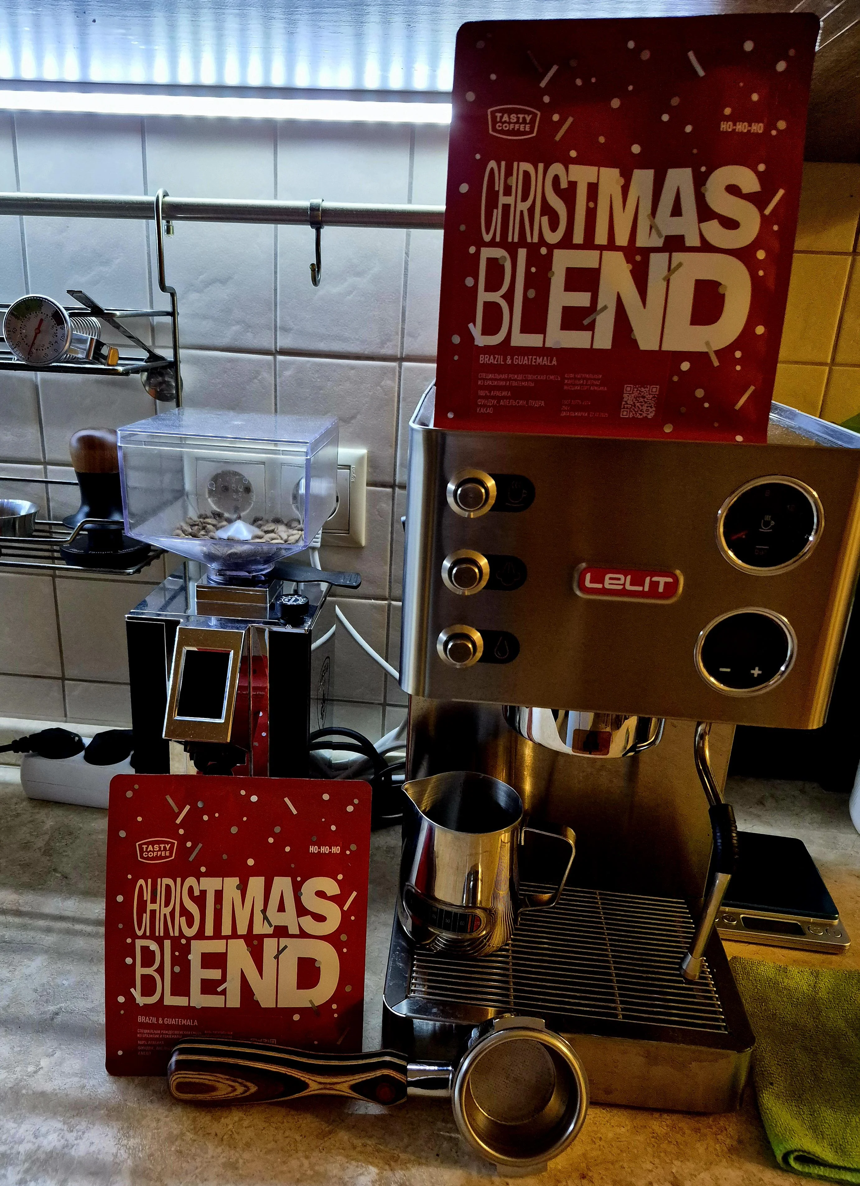- Кофемолки две: Одна с полным бункером, вторая пустая (и в половине случаев EK43).