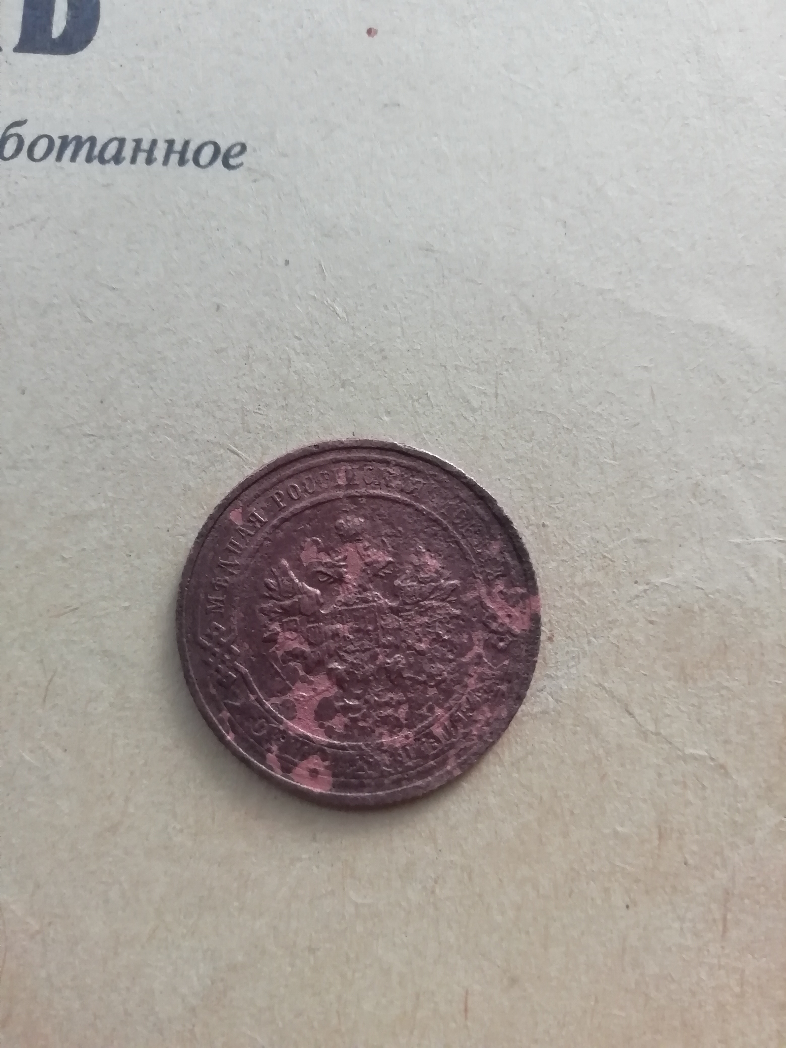 Досталась от деда. Есть, кто понимает какие примерно года? На ней ни номинала, ни года выпуска. Написано только «царский двор российской федерации. Санкт-Петербург»