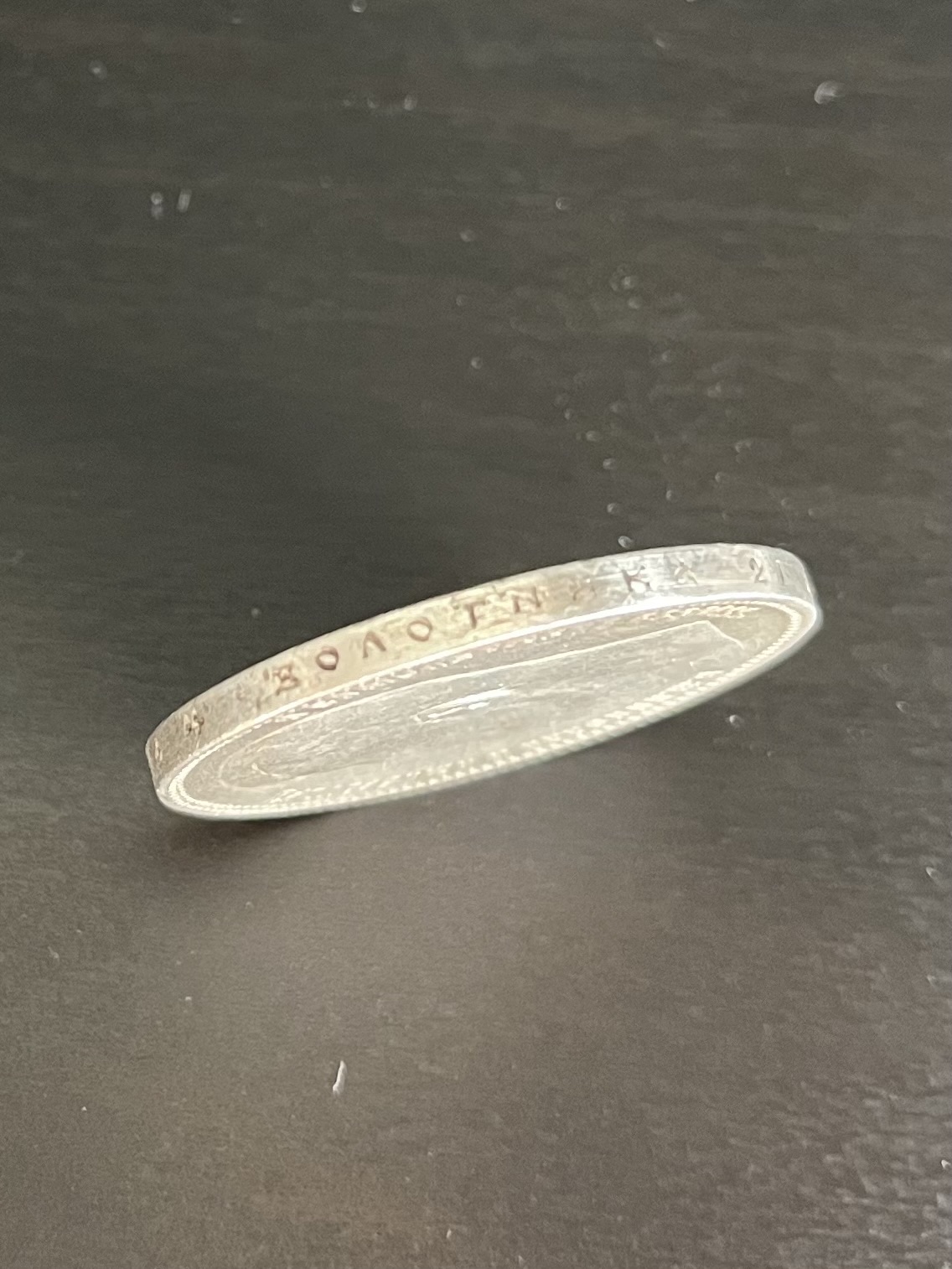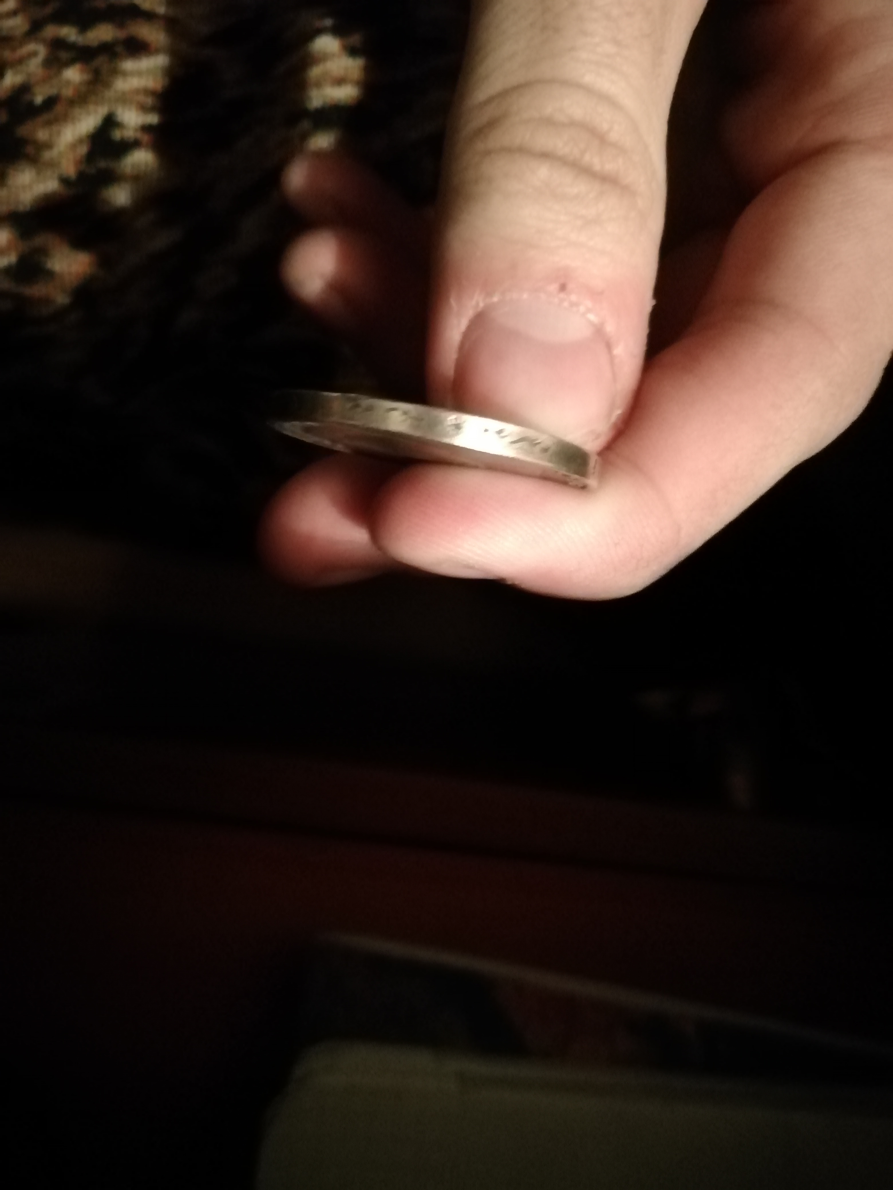 >>522287 вот еще пару фото на норм камеру. По ощущениям на аверсе есть общая впуклость. Так и не смог прочитать имя, как будто какая то тарабарщина.Что скажете господа?