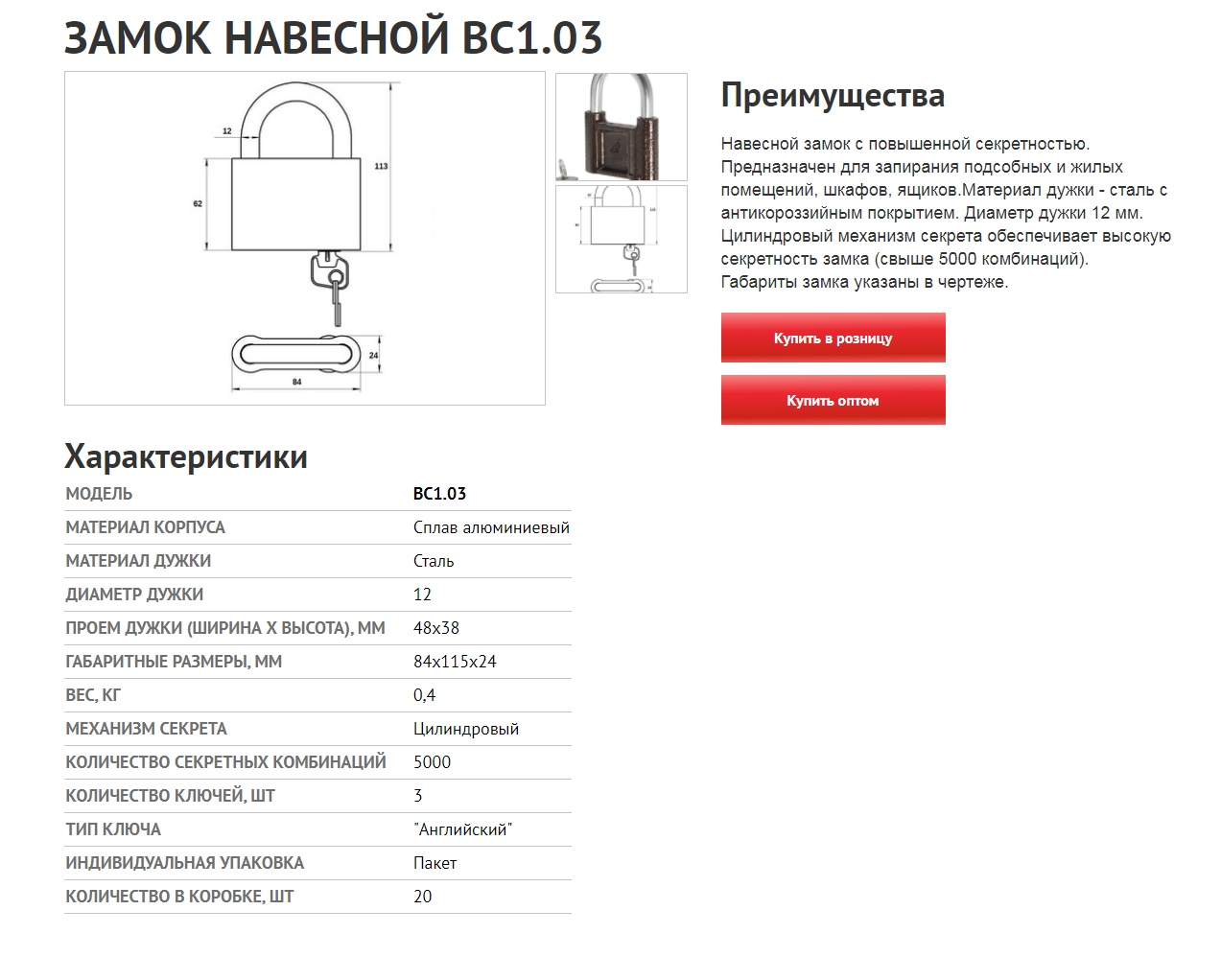 Купил навесной замок ВС1.03. Изготовитель ООО «Зенит-Авто». Замок интересен тем что у него механизм секретности на основе пластин. Дужка запирается вручную (не автоматическая). Фиксация дужки односторонняя. Корпус из алюминиевого сплава. Как видно по ключу нарезка секрета односторонняя поэтому видя только ключ без замочной скважины можно подумать, что механизм секретности штифтовый. Но это не так. Замок вскрывается очень легко не более чем за две минуты. Но у него есть одна особенность: сердечник открывается против часовой стрелки.