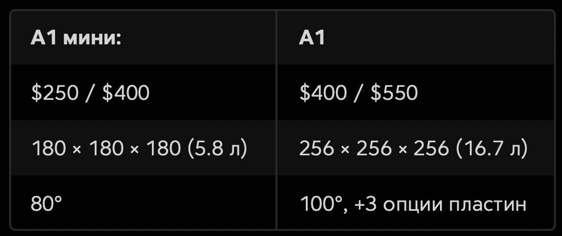 >>819372 Судя по характеристикам, любой китайский закрытый из последних моделей будет лучшим аналогом, начиная от флешфорджа, qidi q1 с подогревом камеры и заканчивая дорогими моделями креалити и бамбуками.