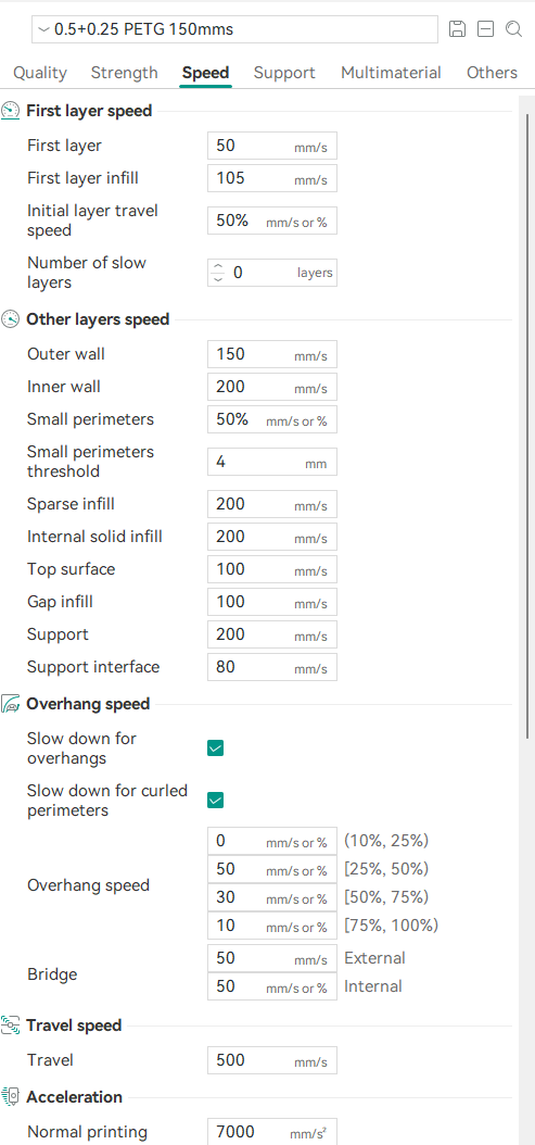 >>824504 >аких тонких настроек, как скорость печати маленьких диаметров и тд в орке не вижу На вкладке "Скорость". Подбери под диаметр этой колонны чтобы не замедлять что не надо.