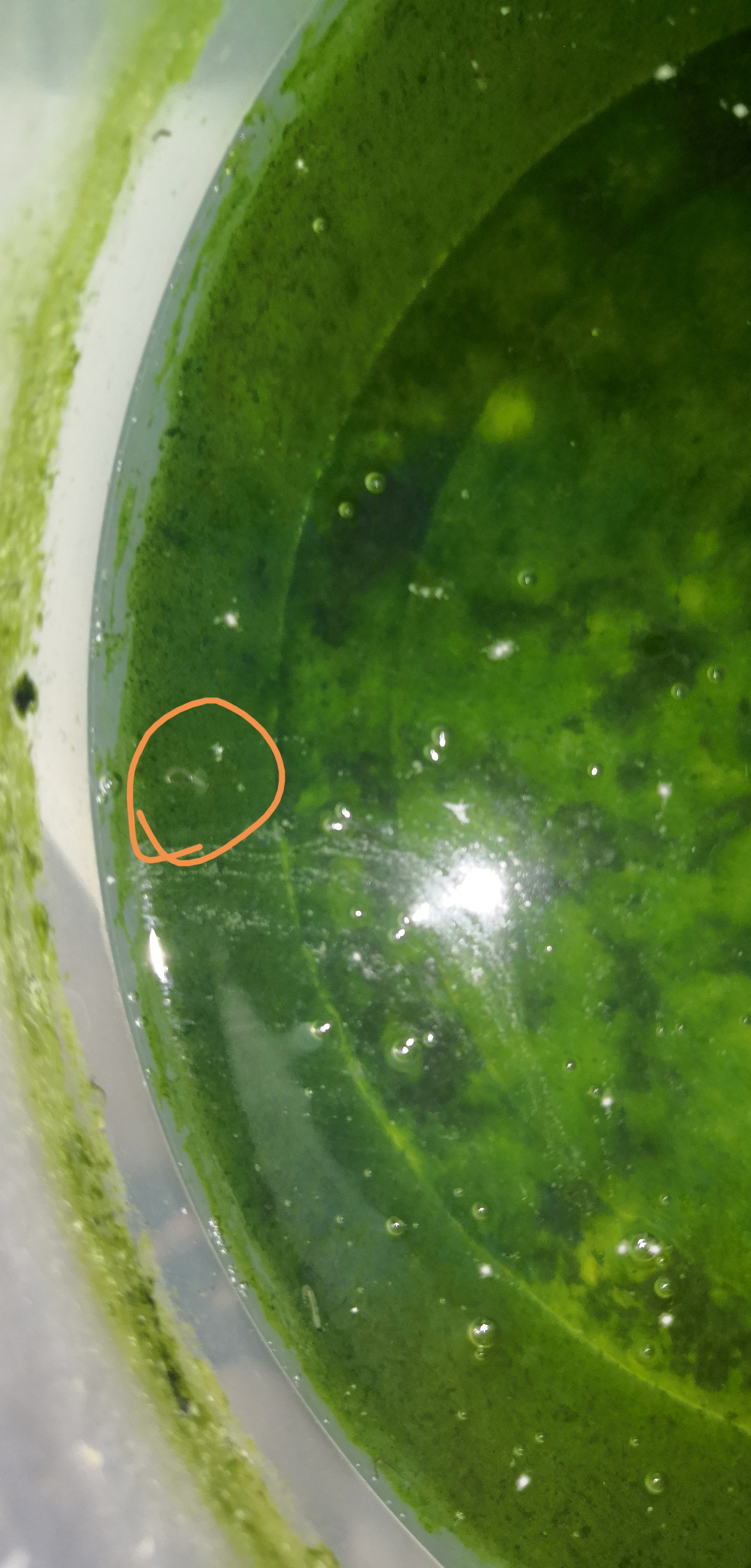 >Я обыел оранжевым сгусток большой. А. Это у тебя прозрачная жидкость, на дне лежат куски возможно живой хлореллы, а у поверхности плавает сопля. Это не хлорелла. Какой-то говняк прилетел скорее всего из воздуха - выкидывай смело.