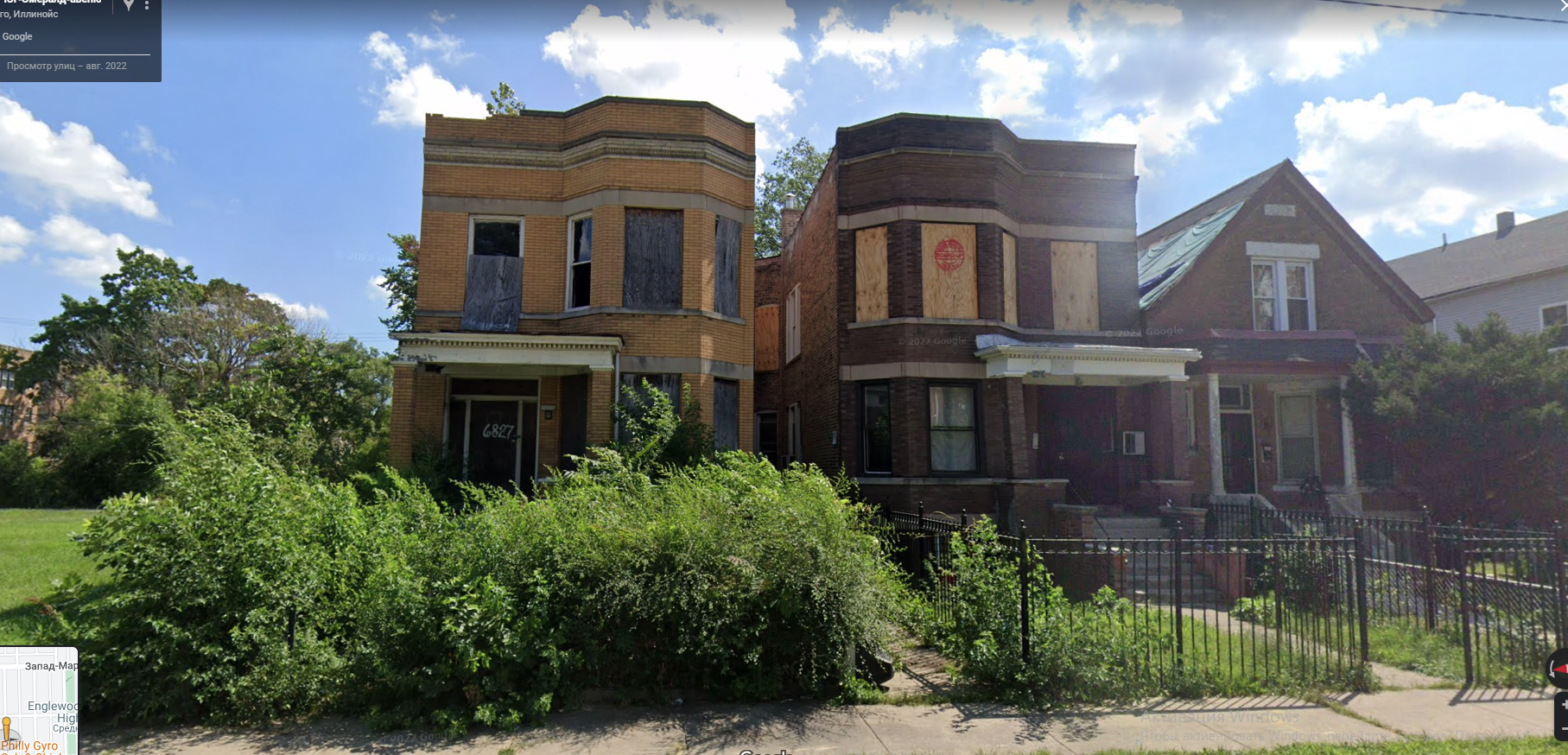 Энглвуд местами выглядит так, как будто где-то в ближайшем подмосковье. Даже сохранились деревянные столбы для электропроводов. У кого-то парники из подручного материала, как и России, грядки, клумбы в автошинах, кучи строймусора, поросшие бурьяном.