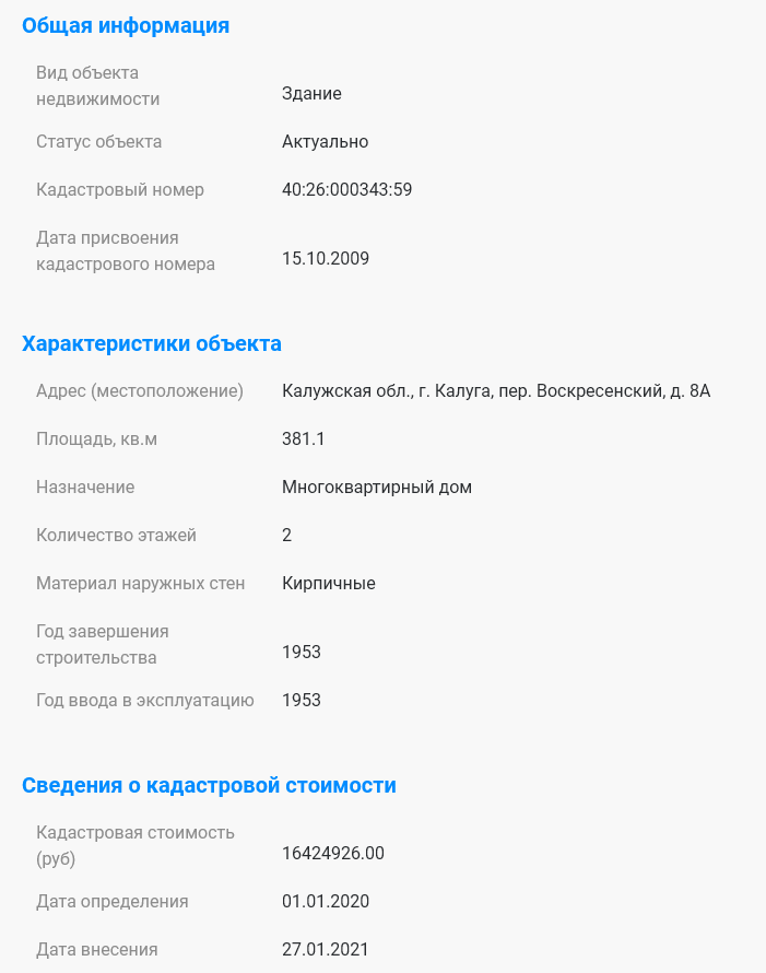 >>713029 Росреестр считает по другому. Хотя допускаю, что 53г это какой-нить год первоначальной регистрации или что-то подобное, а построено может действительно до революции.