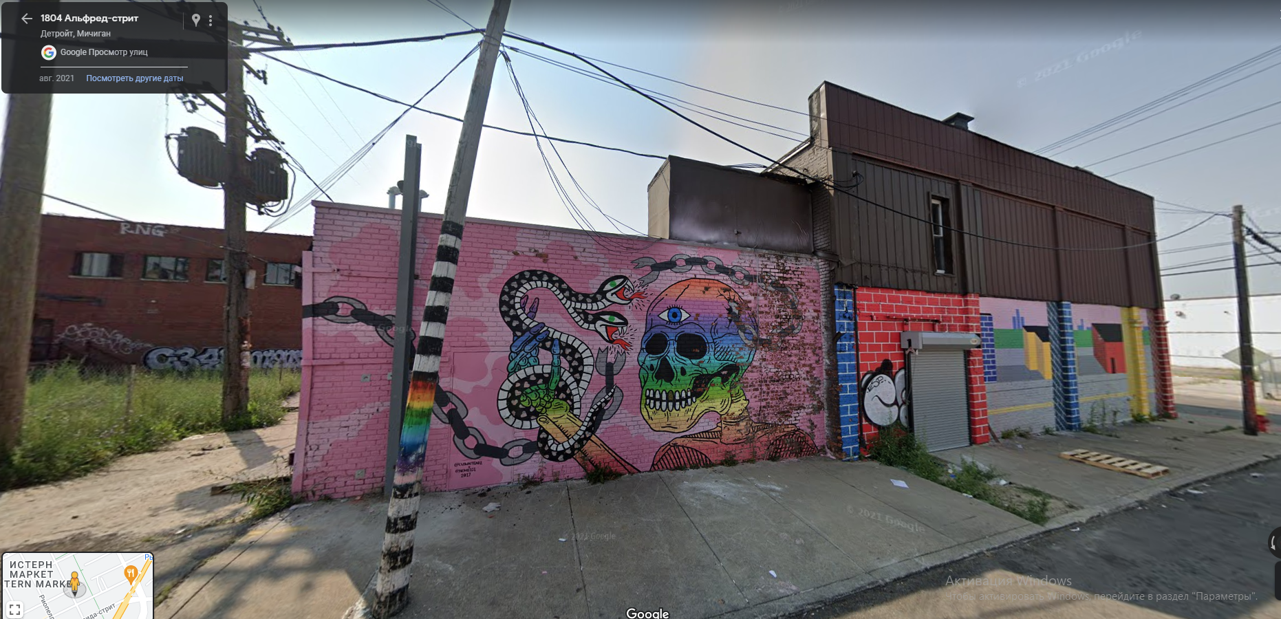 1 - Здесь даже есть свет и признаки жизни, хотя часть окон разрушена. 3,4 - странное огромное здание, у которого нет ни одного окна ни с одной стороны. но есть украшения фасада. 5 - стильная графика на фасаде 6 - а здесь еще вроде остались деревянные перекрытия 7,8 - свалка и трамбовка тачек