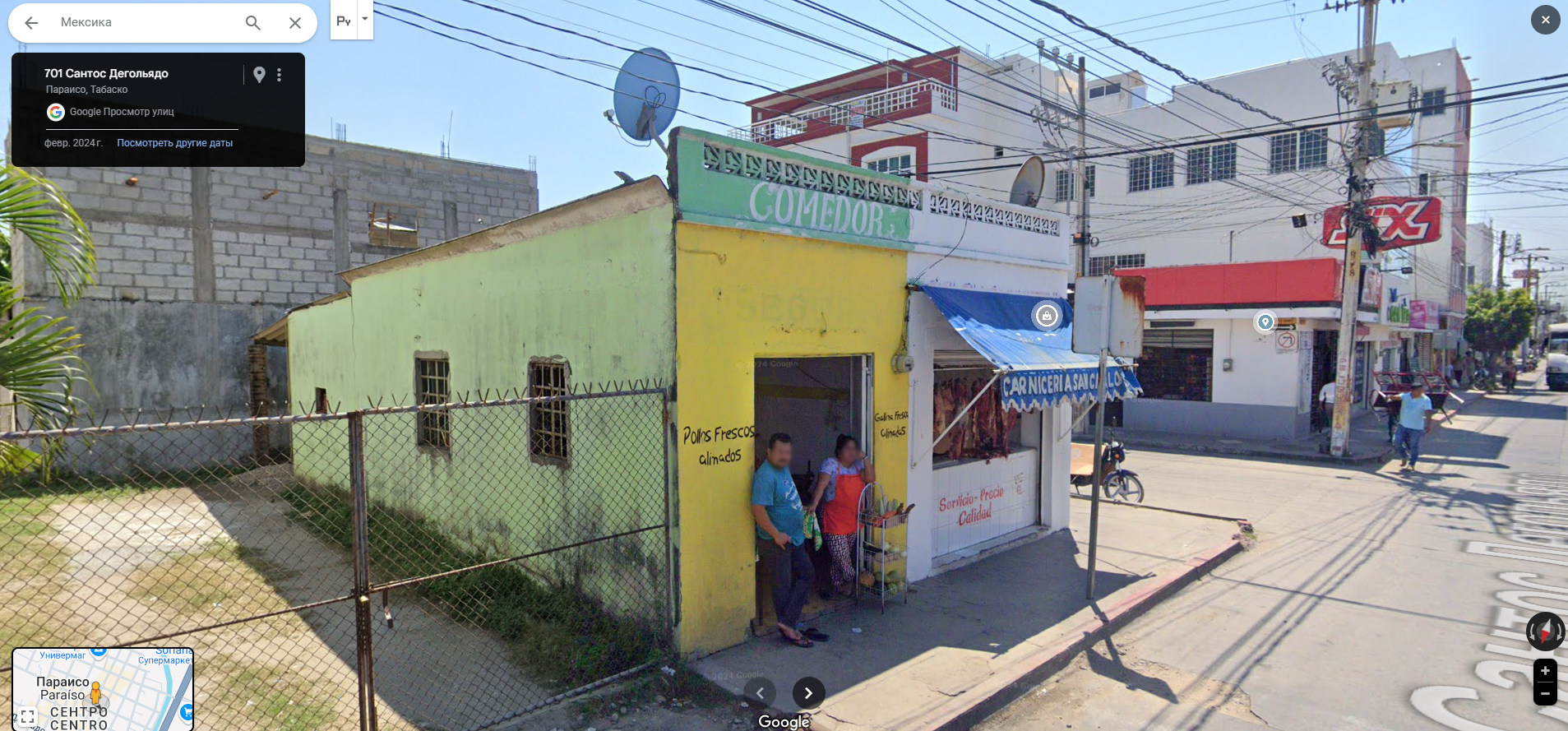 Мексика, штат Табаско, город Параисо. Застройка напоминает Санто-Доминго и Бразилию, хотя они очень далеко. 1 - типичные улочки с низкими зданиями и гаражами, в которых торгуют 2 - мексиканка играет на игровых автоматах в гараже 3 - наверное муж с женой и их маленький магазинчик мяса и овощей с фруктами 4 - 7 - жилые районы бедняков с двориками-гаражами 8 - архаичный автомобильчик, интересно какого года