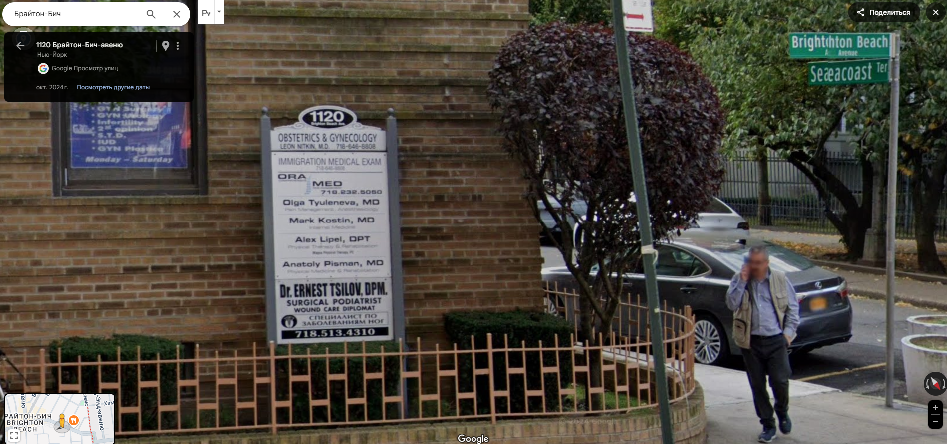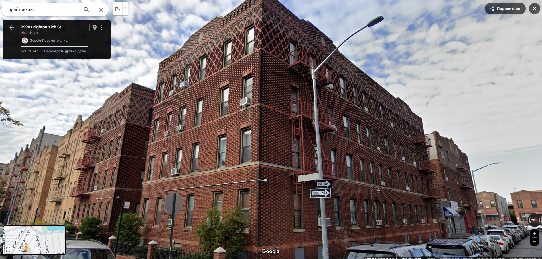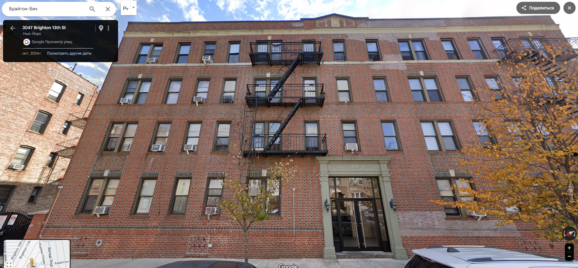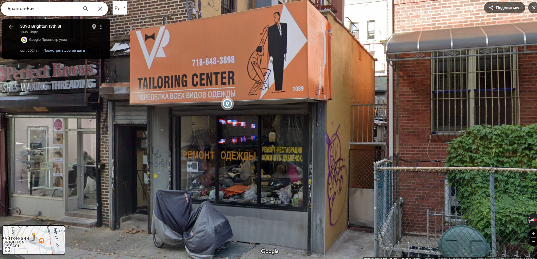 Брайтон Бич в Нью-Йорке. 1 - Наряды дома к Хэллоуину. 2 - Сталинка. 3,4 - искусная кирпичная облицовка 5 - как дома 6 - знакомые имена 7 - еще один шедевр кирпичной архитектуры 8 - знаменитая железная дорога и странные окошечки под ней