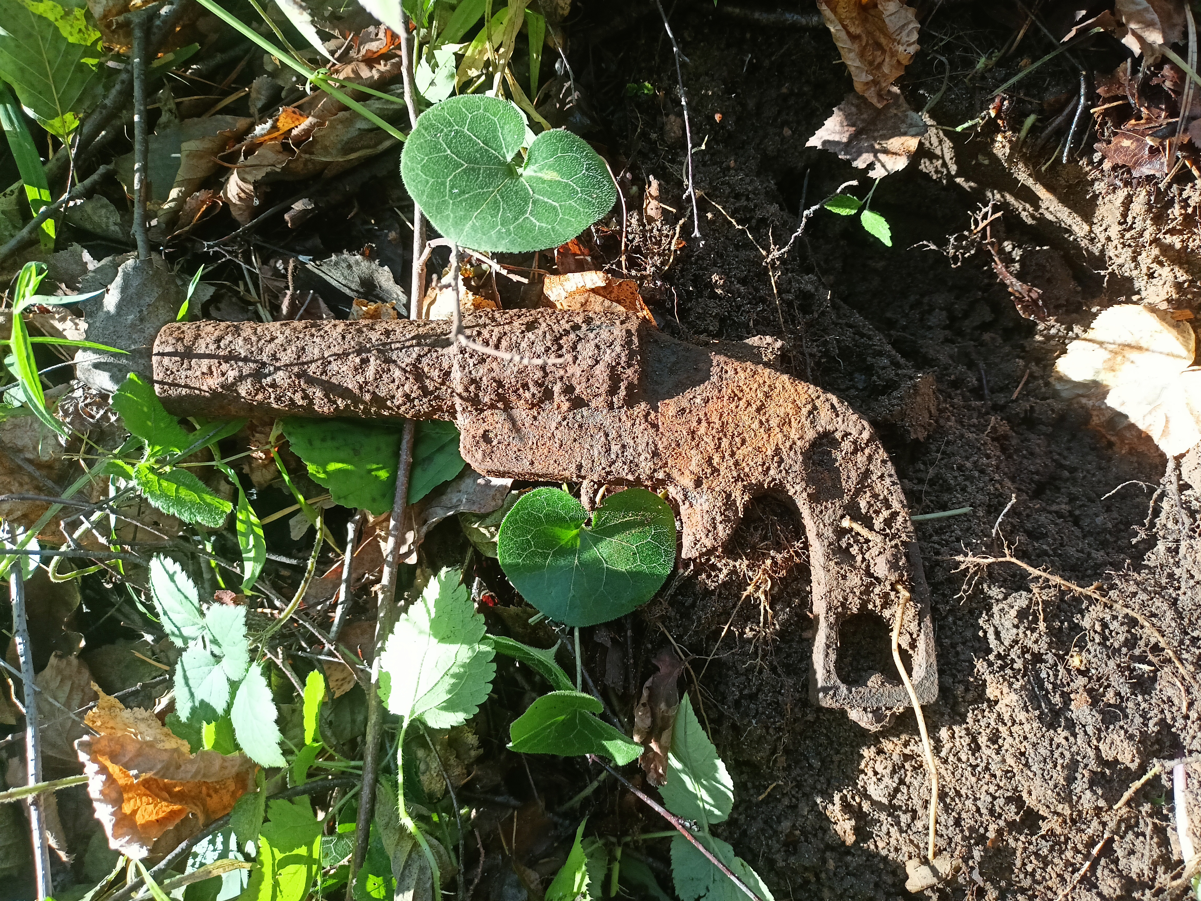 Потом пошел на большое с/х поле - с первого же сигнала поднял ржавую декоративную штуку, явно более чем 200-летнюю. Второй сигнал - гаечный ключ, рядом с этой штукой. Также рядом нашел то ли ножик, то ли набор для маникюра. Дальше был сплошной мусор.