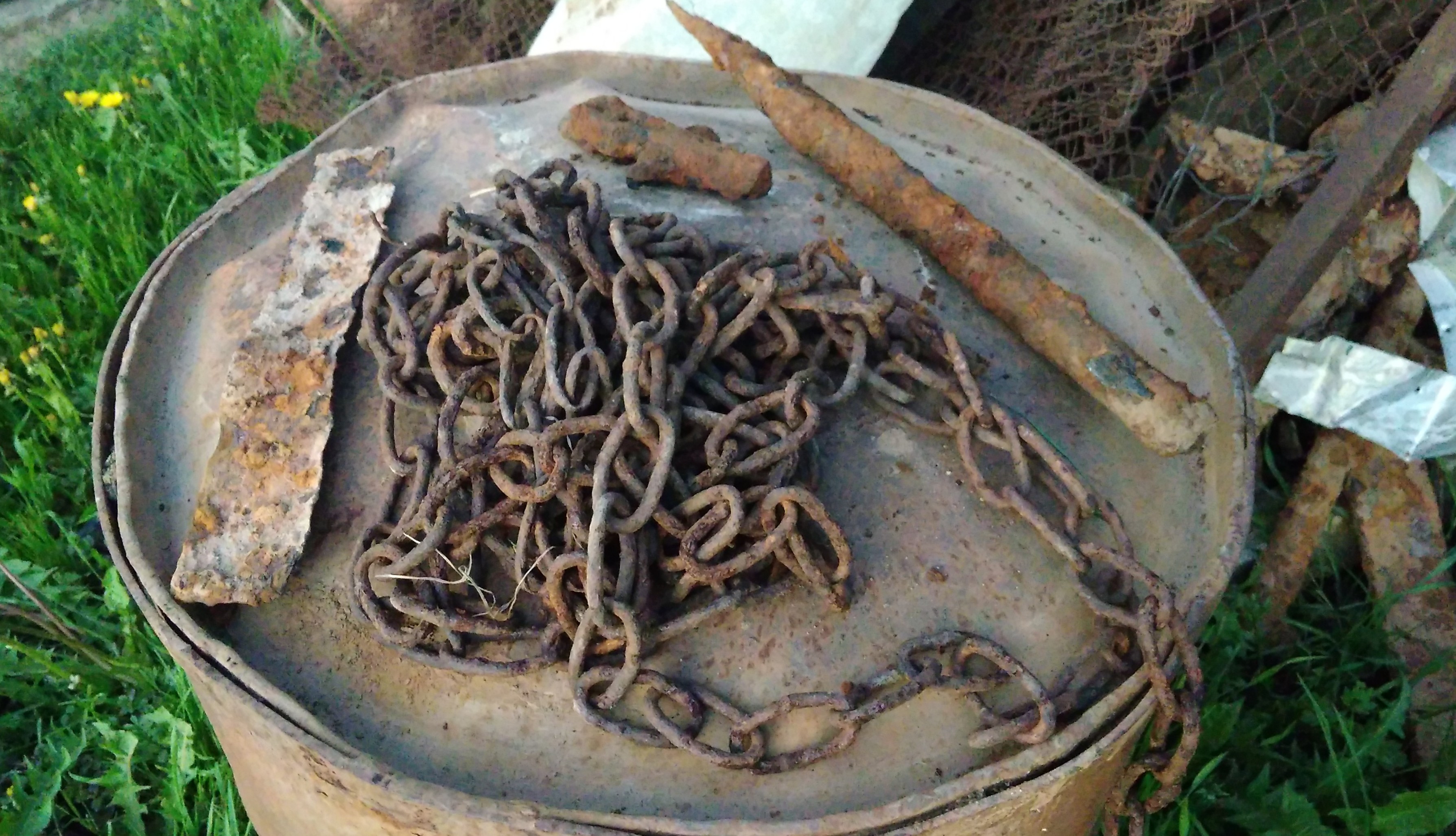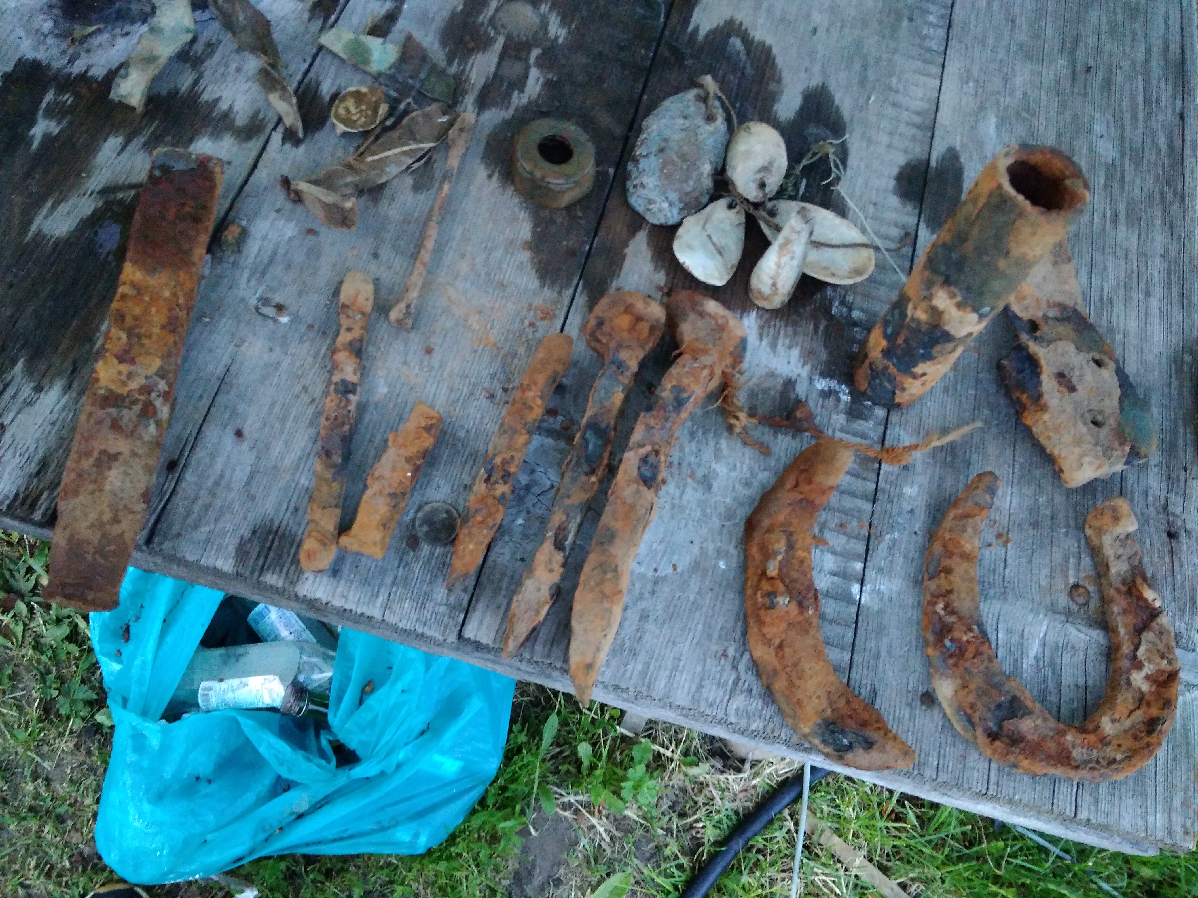 Потом пошел копать в огороды на краю села - мусор и гвозди.