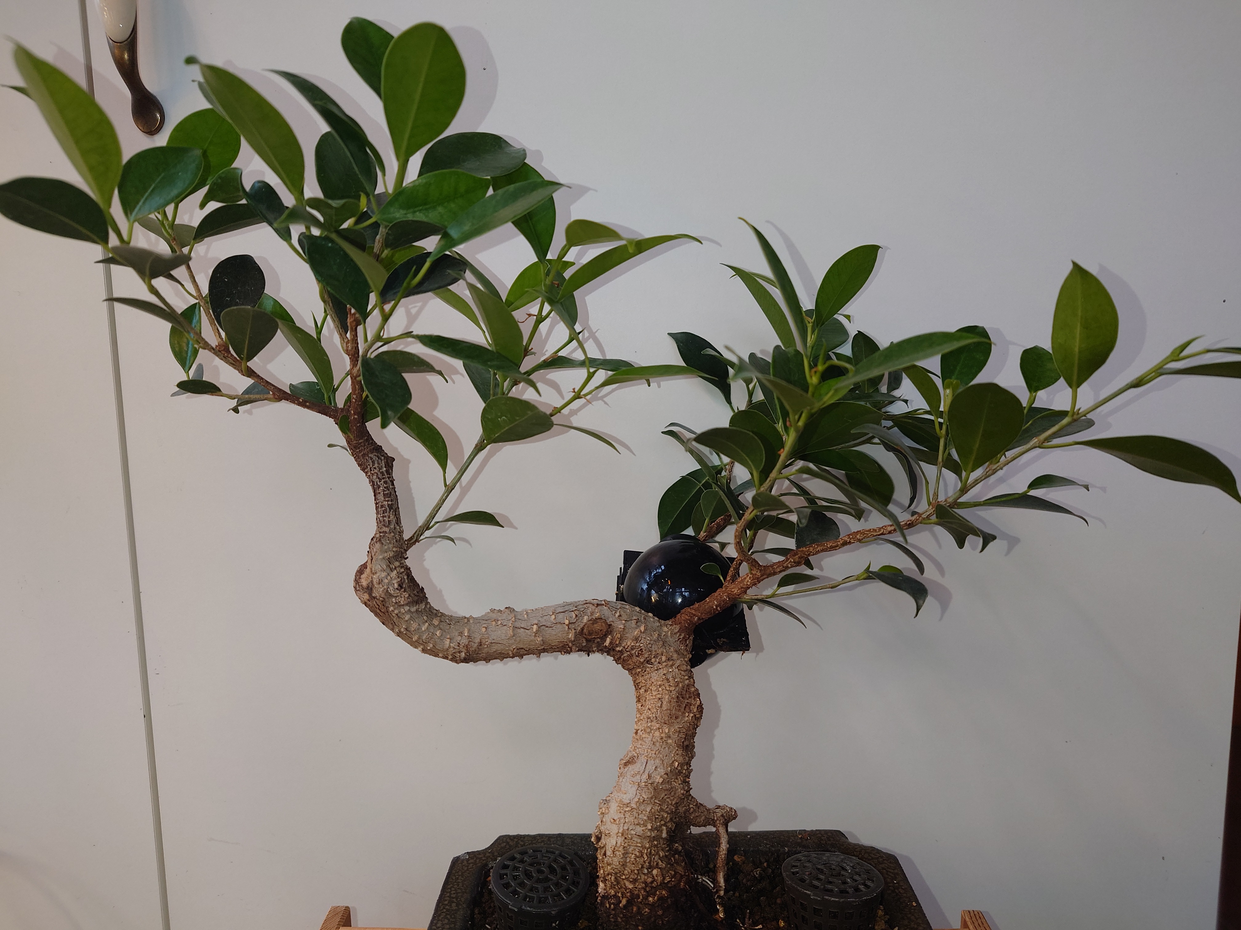 >>810094 Прищипыванием ты хорошего результата не добьёшься, ну ты же наверное хочешь через несколько лет получить красивый бонсай, а не бабушкин фикус? - проволока стоит недорого и накладывать на ветки её не так сложно. С названиями фикусов происходит огромная путаница - ты не совсем правильно понимаешь что такое микрокарпа - вот она у меня на пике, с уродливым раздутым корнем каудексным там от микрокарпы только верхушка, её прививают на корень фикуса гинсенг и получается конечно не бонсай а мутантище