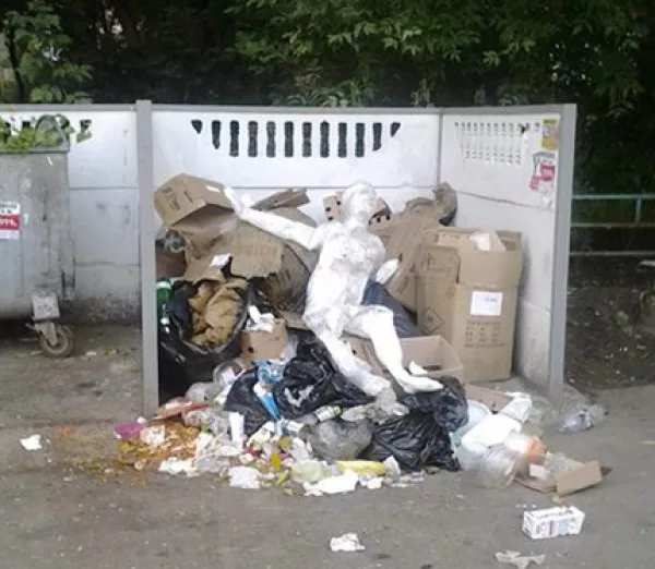 Как же заебали такие, как ты. Каждый день какие-нибудь мудни обложат мусорки своими шмотками и хрючевом недоеденным в пакетиках и коробках. А ты потом это говно должен в баки закидывать, а если эта хуета ещё под дождем раскисла, ммм, каеф.
