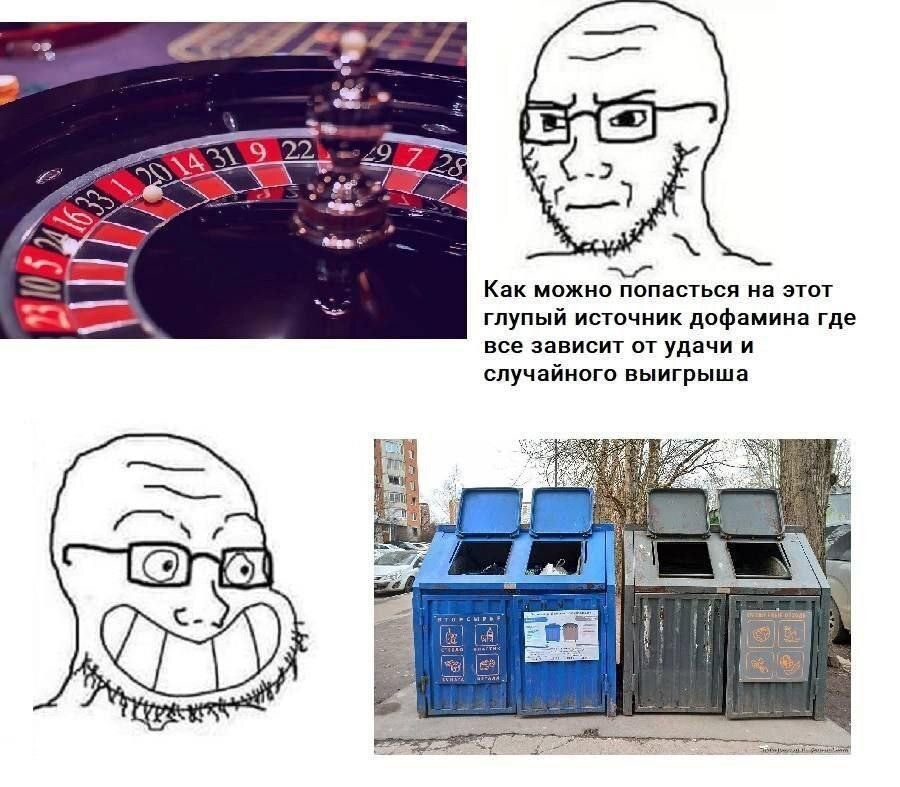 А что, тут столичные совсем не обитают? Все отчёты – супернищий лут, хз чему там радоваться. Какие-то поэмы, посвящённые ссаным бутылочкам и значкам, кто-то тягает центнеры чермета, пока я за полмесяца реализую высоколиквидных пердол ценнее, чем хламьё за всю тысячу постов итт, без напряга обходя десяток мусорок по пути домой. Особенно проигрываю с омежных пориджей, которые стесняются и скрываются, шиз вообще камер боится. У нас всем плевать, тупо подхожу и смотрю, как на прилавок в магазине, разве что не зарываюсь, всё равно самое ценное бережно выставлено на видном месте специально для таких, как я, а копаться – зря пачкаться и тратить время, лучше обойти больше мусорок.