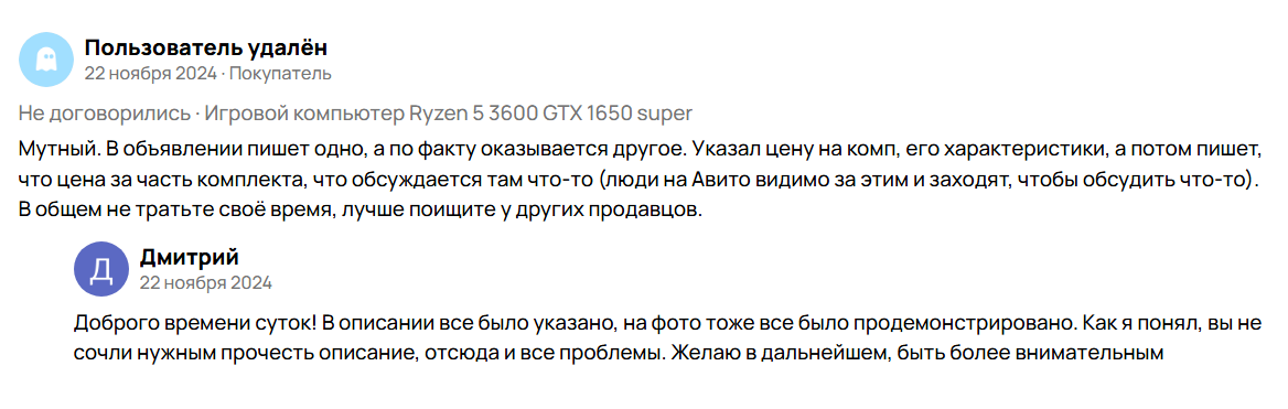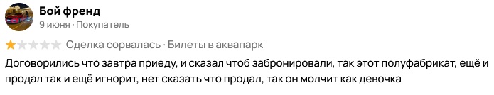 И еще, продавец может такие отзывы обжаловать, и они перейдут в отзывы без оценки, т.к. сделки и встречи не было. Время и деньги свои покупатель не потерял, а продавец ему не грубил и не хамил. Видимо он еще про это не прочухал.