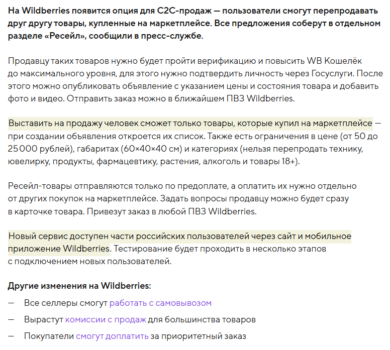 Запустился валдберис. Короче максимально верифицируешся, ограничение 60/40/40 см для посылки, но все это неважно потому что комса валдберис 20-25% нахуй.