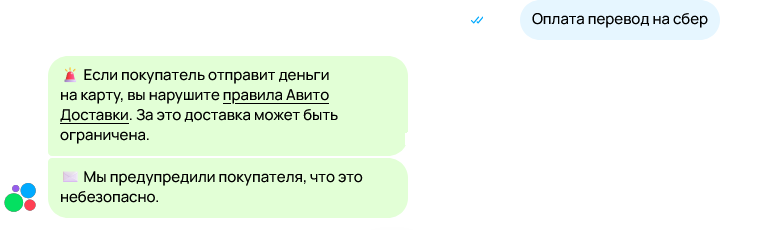>>805919 Очевидно, что бот работает, когда включена доставка. У меня она выключена, я и предоплату прошу, и адрес даю, и номер карты, и номер телефона и в объявлениях пишу, что только предоплата или самовывоз или сам отправлю. И никаких вообще предупреждений не было ни разу. Пробуй выключить доставку на время, когда идёт диалог.