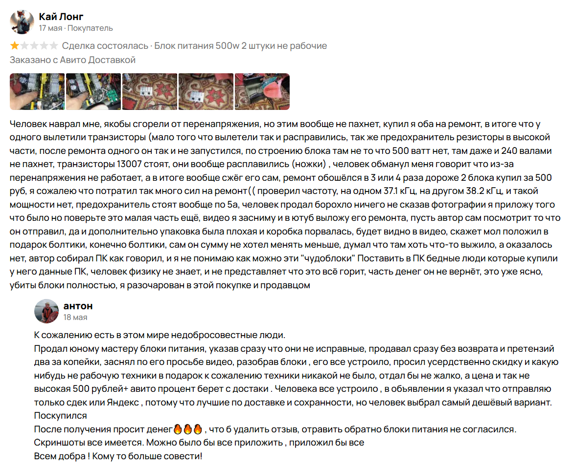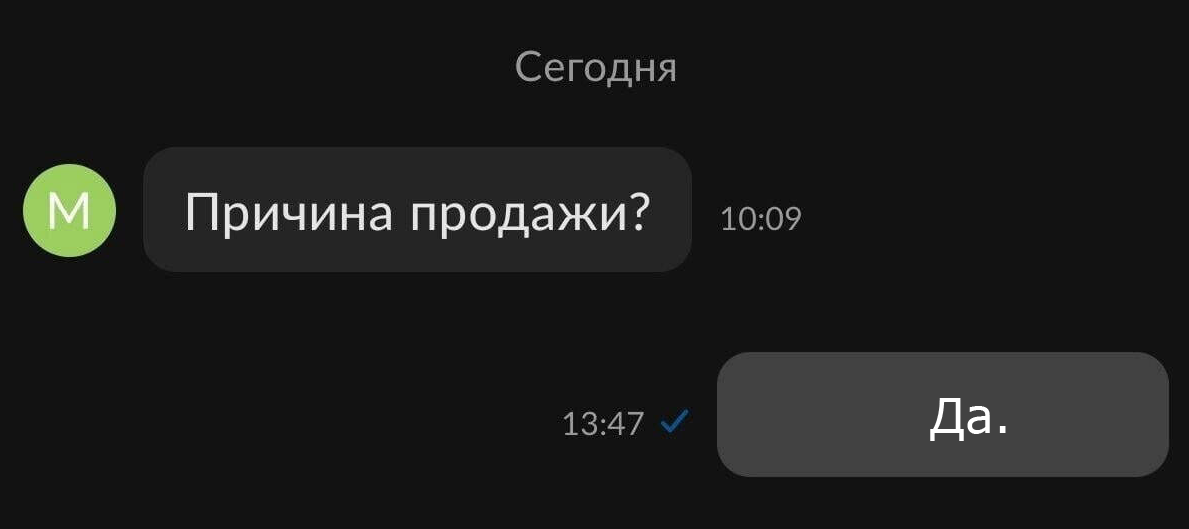 Ну то есть, блять, камон - конверсия на авите ебаной и так очень низкая, лично я делаю всё возможное, чтобы её увеличить - красивые фото, видео, короткое, но максимально ёмкое и информативное описание, достака включена и отправляю любыми способами (даже ебаным dpd, который от меня в двух станциях метро - благо, им заказывают раз в год), максимально оперативно отвечаю и так далее.