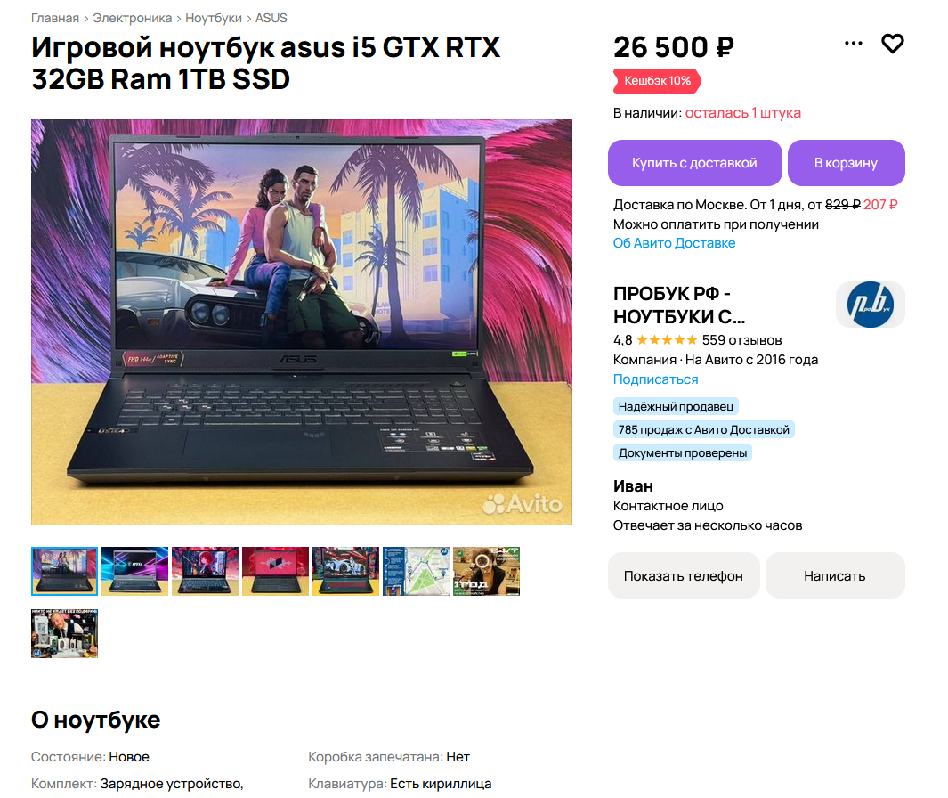 >>808804 Сука, комп искал на авито, с определенной видеокартой и определенным процессором, чтобы прицениться за что свой сливать. В итоге объявление, в названии которого название связки процессора и видюхи, а в описании скромно указано, что цена БЕЗ ВИДЕОКАРТЫ. И по моему репорту нихуя ничего не забанили, и объявление не исправили. Сука.