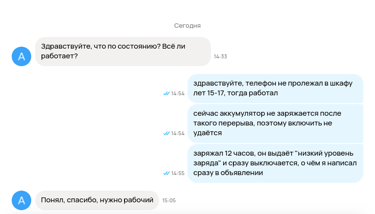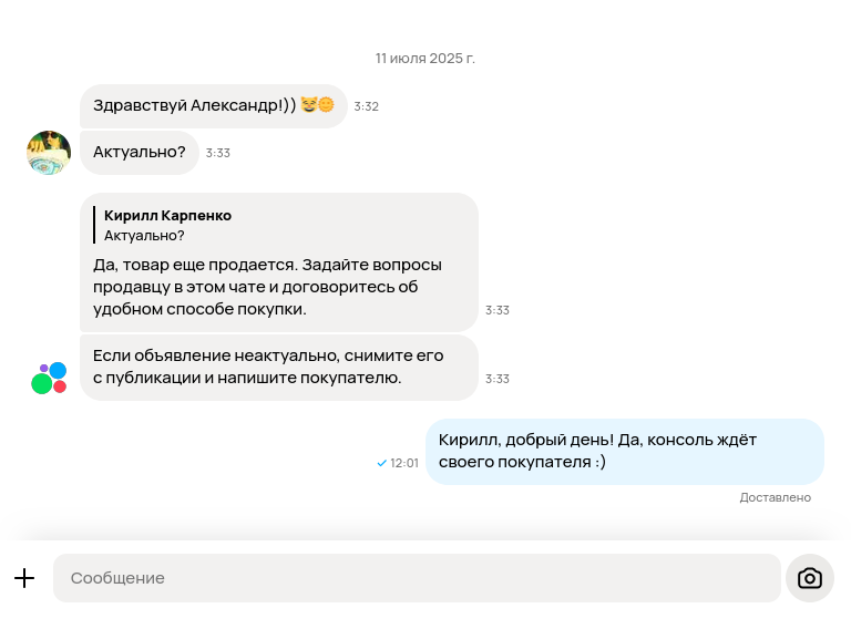 В: На авито приходят сообщения типа "еще продаете" или "отправите доставкой", отвечаю и дальше меня всегда игнорят, как быть? О: Гении из авито сделали кнопки для начала диалога, покупатель случайно их нажимает. Терпи.