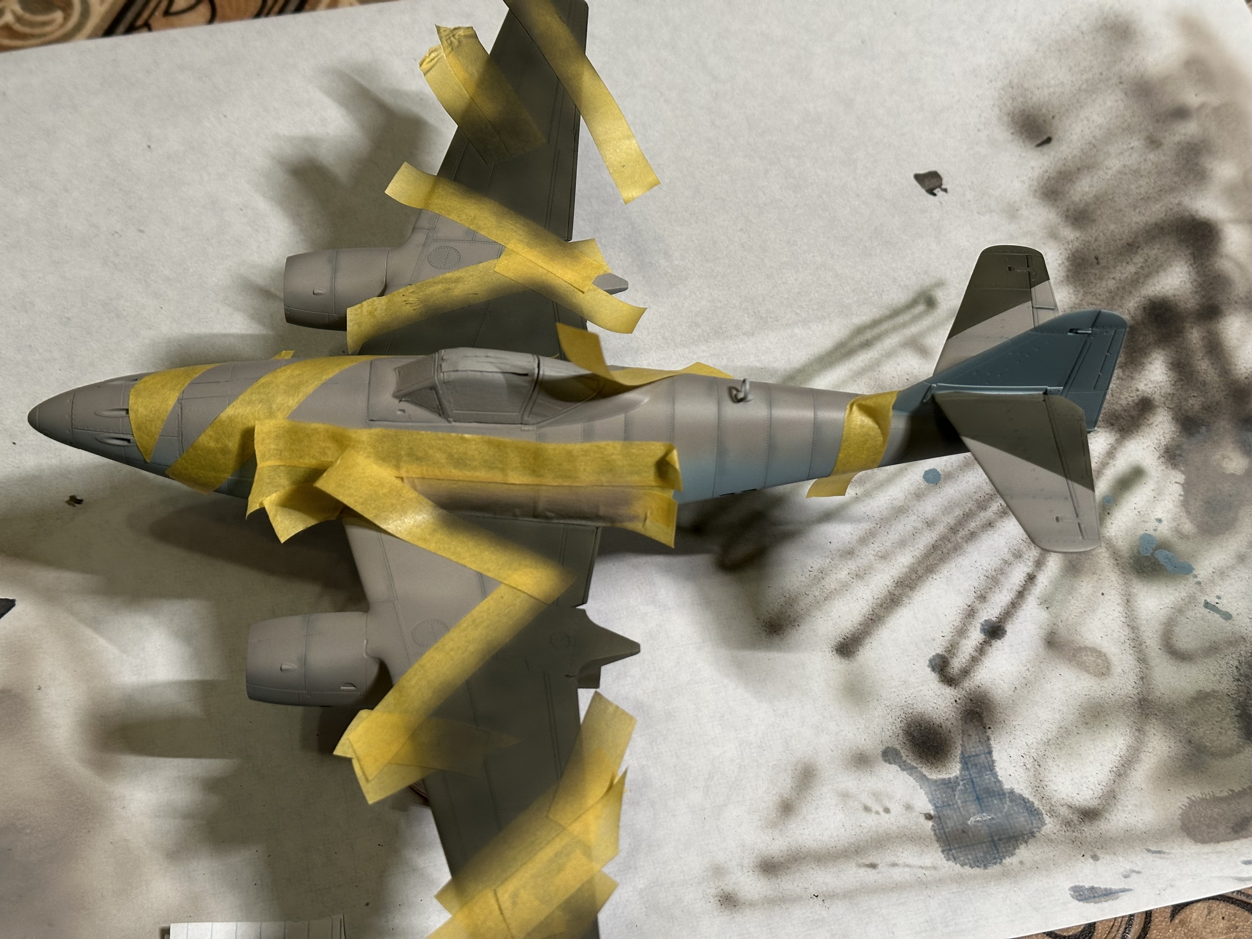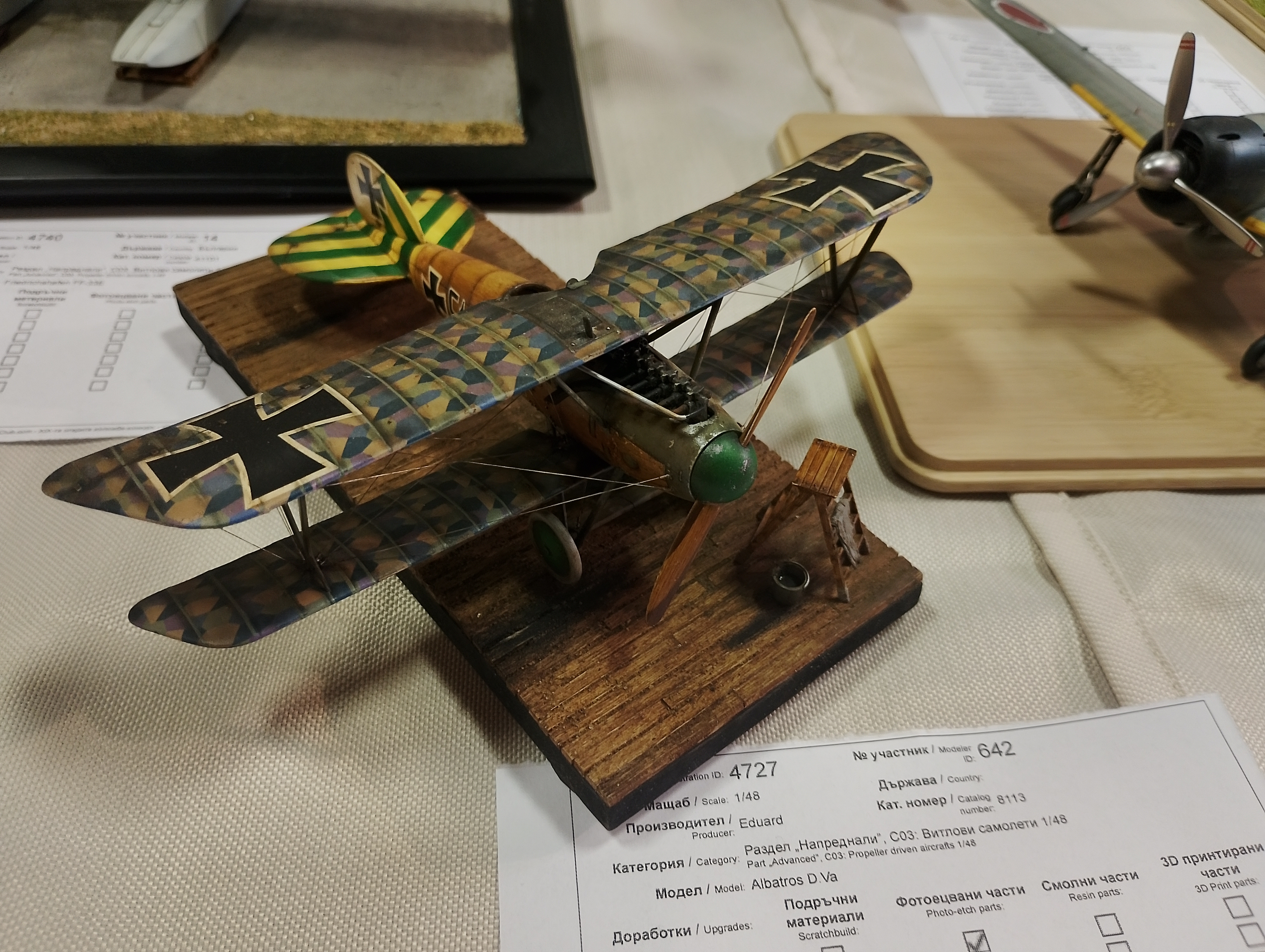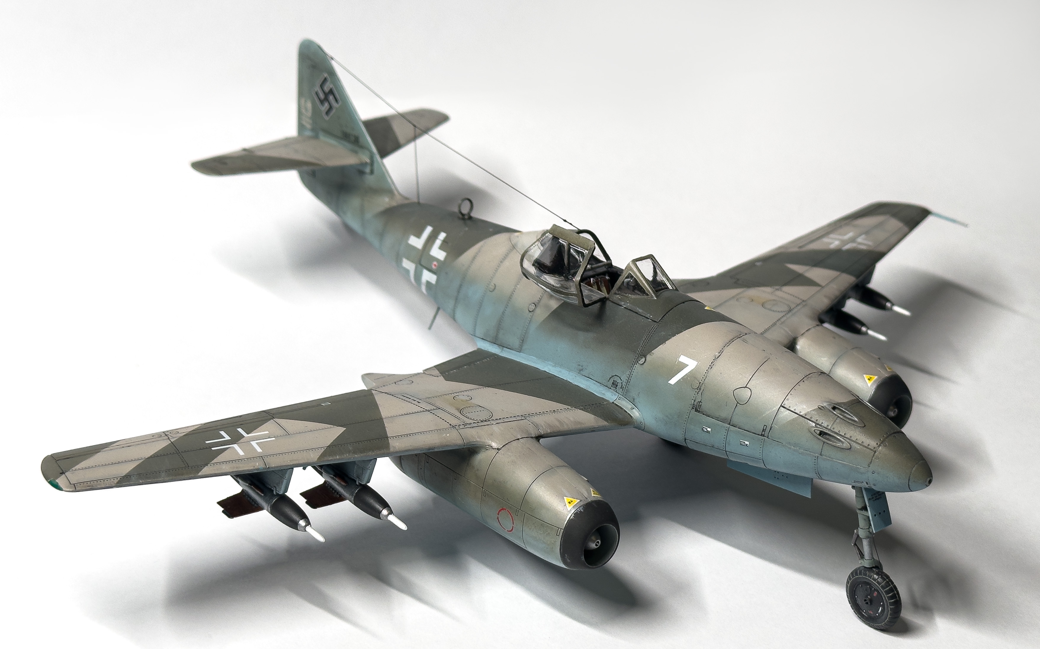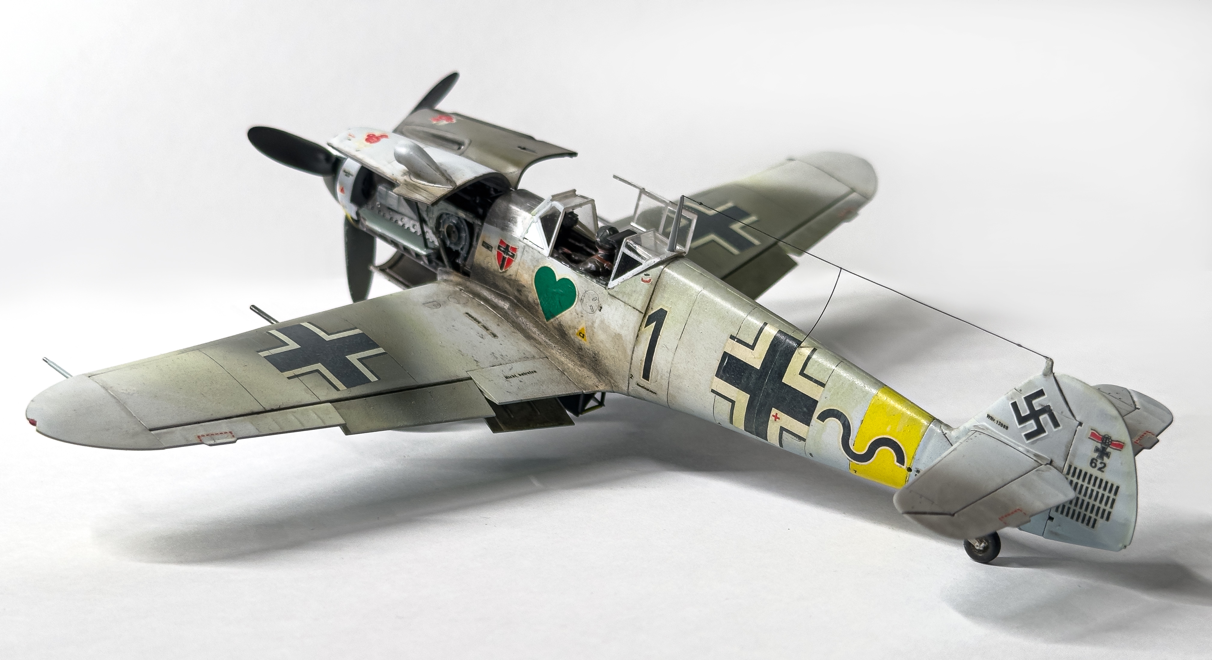 что-то тред совсем омертвел по сравнению с зимой. разбавлю своей третьей моделькой. покрас испорчен, зато я узнал, что на шагренистой поверхности делать масляные точки и смывку занятие не очень разумное, так как излишки убрать потом очень сложно. удивился, как смог сделать аккуратно антенны из тонкой лески, изоляторы делал пытаясь накрутить с палочки каплю суперклея, было неудобно. потом прочитал, что лучше попробовать клей пва. фонарь кабины окунал в футуры, давал просохнуть сутки и снова окунул. стал чище, но я пго испортил серой шпаклёвкой от тамии. мне пришдо в голову приложить фонарь, а неровности между ним и фюзеляжем закрыть шпаклёвкой, я подумал водой смою с фонаря, но не тут то было. в принципе прогресс какой никакой есть. КСТАТИ. палочку, нижняя половина которой деревяннная dunkelgelb от джим скейла я приклеил на супер клей. и никаких помутнений от него. да что скрывать, я фонарь в двух местах вообще на него приклеил, так как его пришлось сжать по бокам. похоже реально футура даёт защиту от помутнений от цианокрилата. но может я был настолько аккуратен.. снизу слишком большой нагар получился что-то, это большой минус для меня. ну и к вакуумным моделям я больше не прикоснусь. сейчас начал звездовский pz4h 1/72, хоть и есть проблемы со стыкуемостью небольшие, всё равно намного приятнее, чем точить каждую деталь и подгонять друг к другу. а ну и я испортил две декали, на этом номере M8CP должна быть акулья морда, но я их испортил в силу чуть неправильных размеров видимо фюзеляжа, так что пришлось заюзать пчелу. а декаль настолько качественная, что когда я её снимал с подложки, почти весь цвет остался на ней, и вместе жёлтого получился бледноватый. металлические детали не подкрашивал, так как это "фишечка" модели. в конце скажу, что впервые начал что-то делать из литников. тут это: нижняя кольцеобразная антенна накрутил гретый тонкий литник на кисточку, а кольцо сделал, расплавив клеем концы, антенна с конусом на конце, треугольничек возле колеса, палочка на фонаре кабины, пулемёты, трубка пито, которую я 3 раза ломал в силу неаккуратности