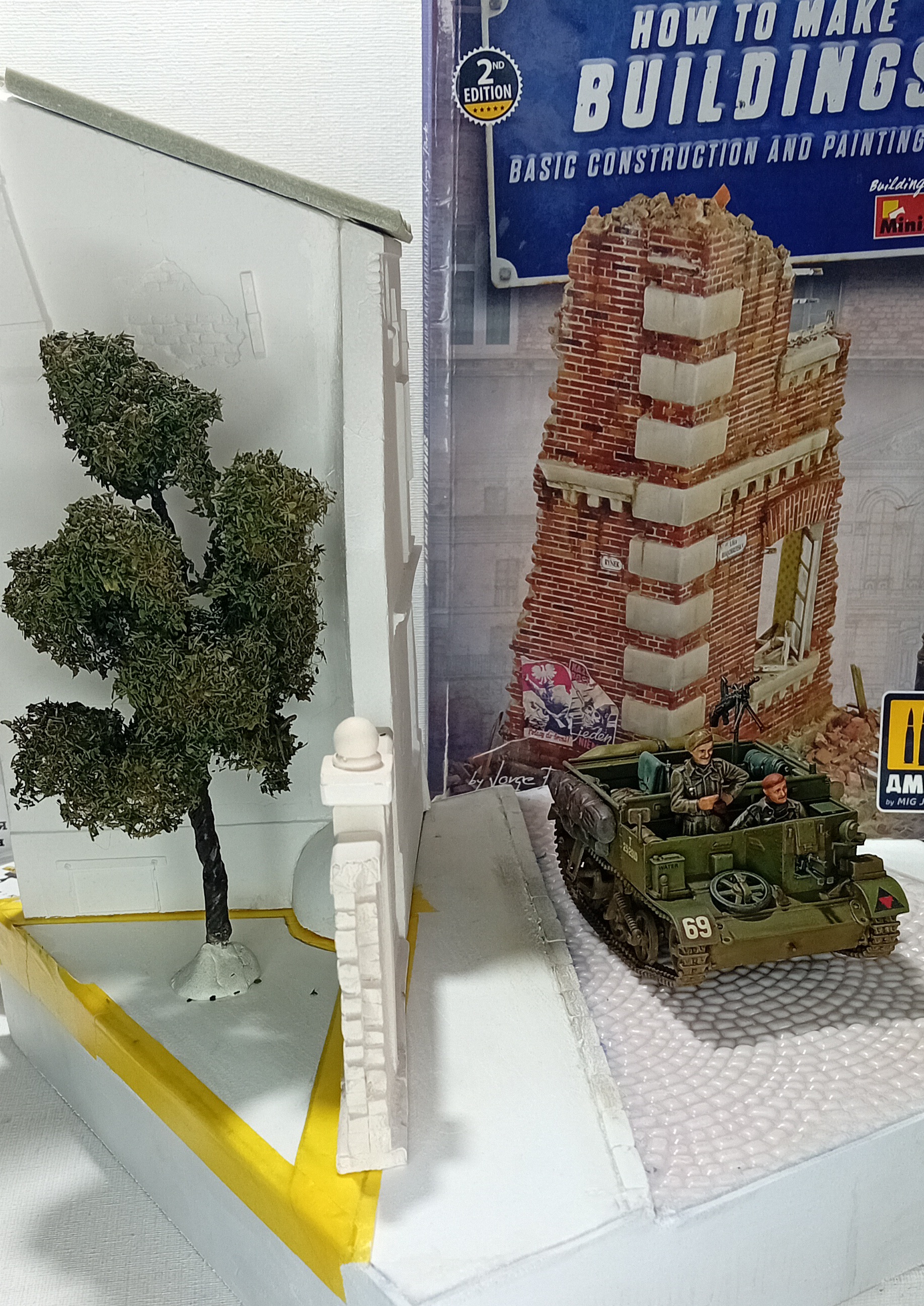 >>807887 Поддержу этого достойного анона контентом и оживлю тред концептом нового проекта в формате городской диорамы. В этот раз я работаю с готовыми наборами из гипса. Первый раз в таком объёме. Аноны, если в работе с ним есть нюансы, то рад был бы их т вас узнать. Саму работу разделил на 5 этапов. 1. Задний двор (почва из модельной ландшафтной пасты+высадить газон+дерево (готово)) 2. Забор из кирпича 3.Дом (1+2+3 этажи, оконные рамы, ставни, стекла, ливневка и интерьер этажей) 4. Сама база (асфальт+мостовая) 5. Мелочи для оживления (фонарь, электрика+провода, информационный баннер на доме, плакаты, осколки кирпича и камня) Буду по мере сил выкладывать прогресс. Всегда лень качественно фоткать. Пока вот так.