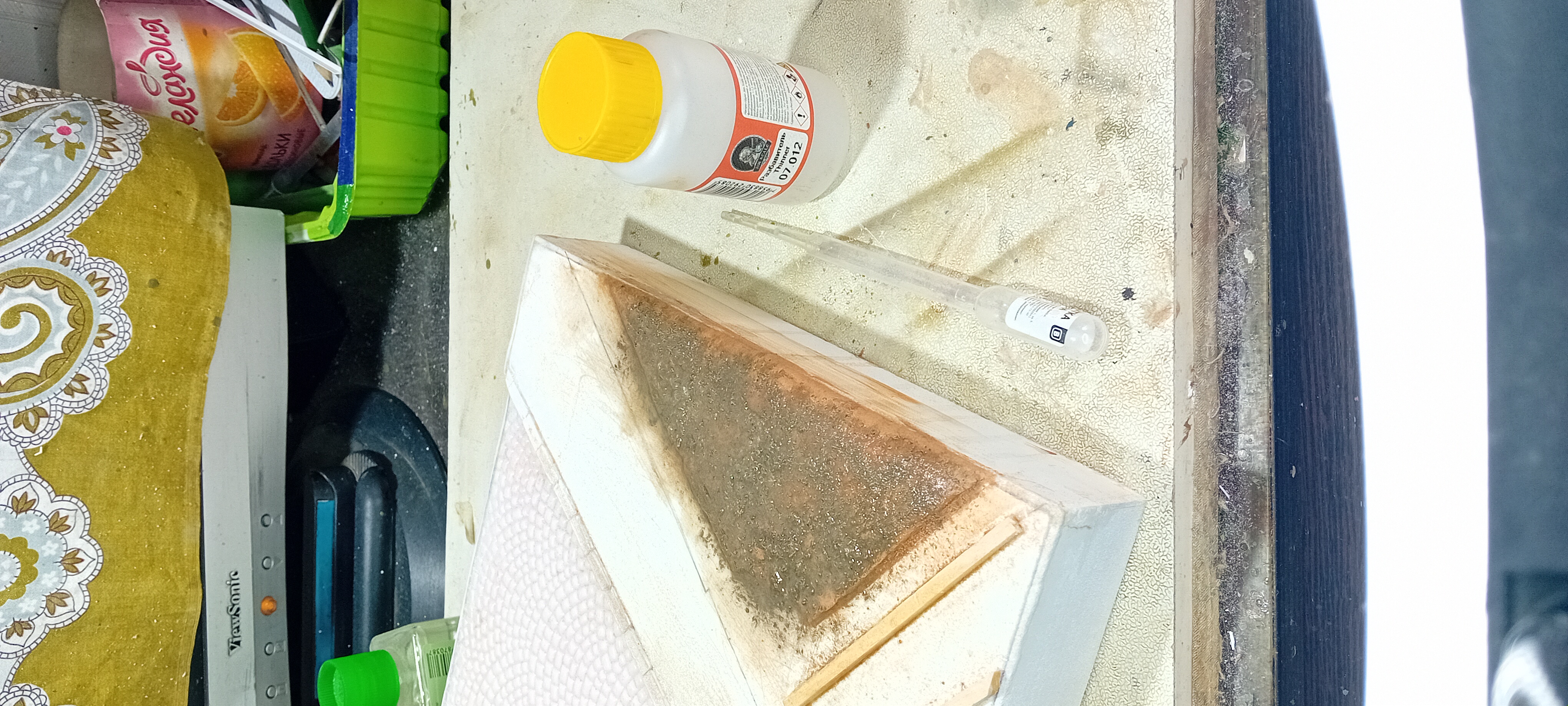 Доброго дня, аноны, чем можно сделать сколы краски на пластиковом контейнере? Идея такая, что он старый стоял, краска трескалась, обваливалась. Пикрил не покрашен ещё.