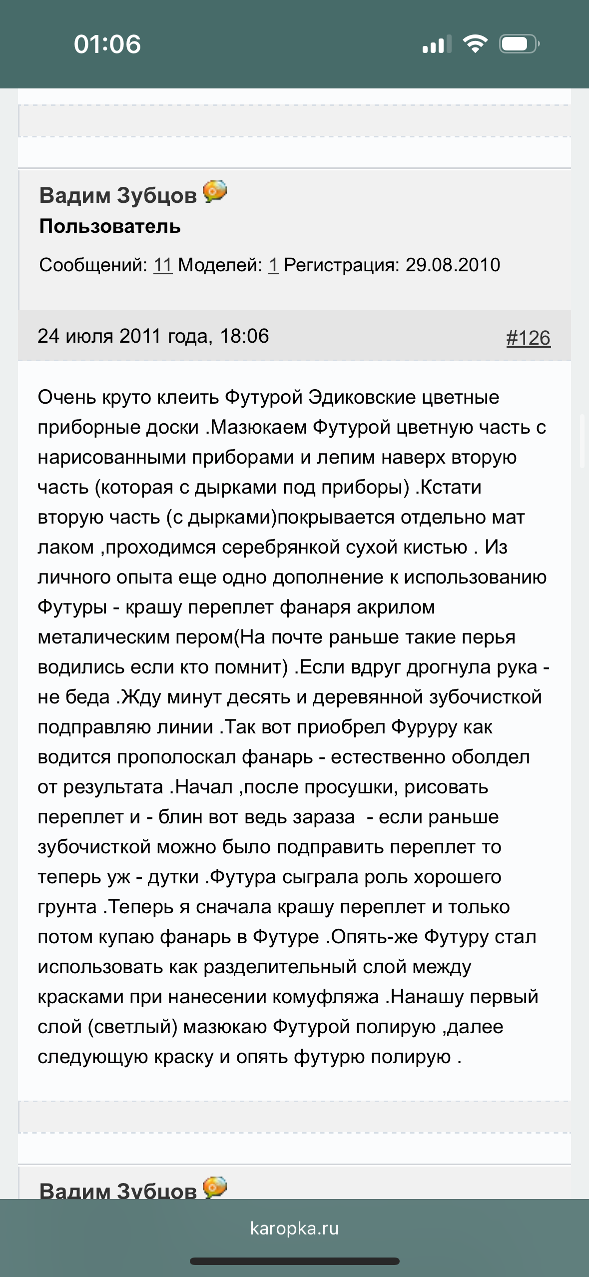 Вот вкатываюсь потихоньку, покурил форумы, точнее то что от них осталось, и понял, что опоздал лет так на 10-15. Походу многие моделисты в Мирах Танков и Громах Войны коллекции теперь собирают. Поначалу энтузиазма было нормально, но смотришь на покраски бывалых и руки опускаются, через сколько же брака предстоит пройти, чтобы вышло что-то годное. Так-то в пиздючестве был опыт сборки ис-3 с отцом, но это оказывается лишь 20% от общего объема работ.