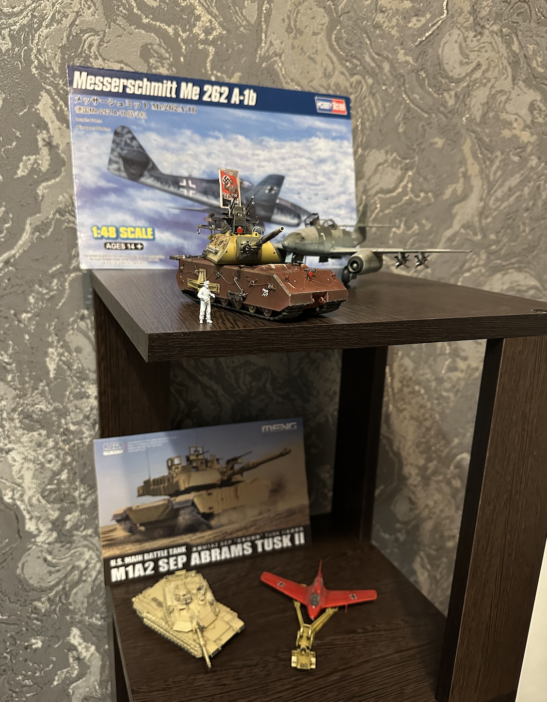 чередую сборку танчиков и самолётов, поэтому на днях начал сборку дров из леонардо за 1.5к из середины 70х годов. это жесть, расшивка везде неправильная, сил хватило только на верх крыльев. единственный плюс - много декалей, жалко тратить на дрова, не все буду наносить. к сожалению не удалось вложить душу в сборку, поэтому модель получается скорее худшей среди предыдущих. но я развёл hobby color aqueous 1:1 водой и мне понравились эти краски, только сохнут долго и аэрограф джаз с конченным курком не позволяет наносит тонкие аккуратные слои. заказал даже родной растворитель, читал что он идеально подходит к AK real colors, тоже есть пунктик попробовать эти краски потом. так как из танков у меня только Е100 от амузинга, решил приобрести что-то попроще. с уценкой на модельной лавке взял трофейный кв1. посмотрел видео с ним, вроде не дрова. ну и заодно сделал гигантский закуп ништяками
