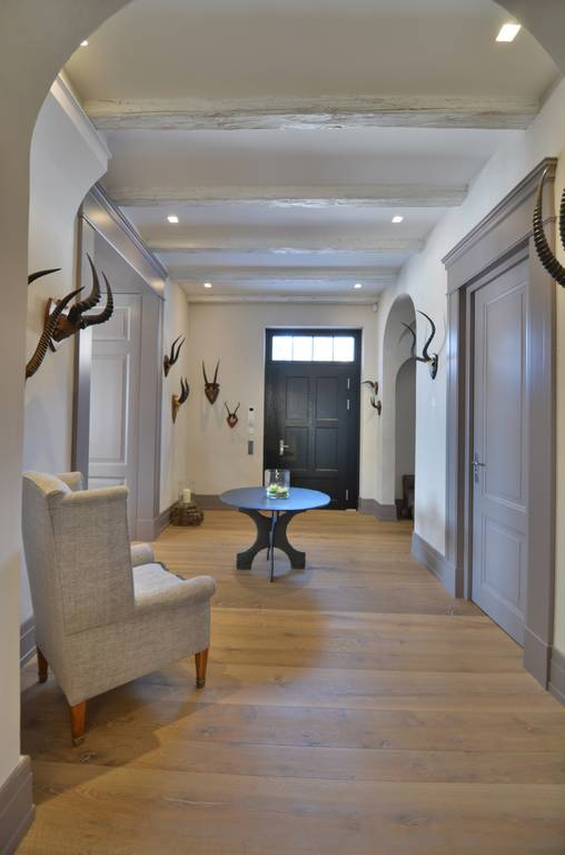Auf der Gartenseite verkleinerte Götz einen unmaßstäblichen Anbau, der das Wohnzimmer zum dunklen Durchgangsraum degradiert hatte, und wandelte ihn in eine Loggia um. Eine unförmige Terrasse ließ er abbrechen, die Fliesen am Sockel abschlagen und durch klassischen Steinputz ersetzen. Innen formen der Wohn und Essbereich des Erdgeschosses eine offene Raumfolge, jetzt auch verbunden mit dem Kaminzimmer zur Straße. Im Obergeschoss liegen die privaten Rückzugsräume. Prägend wirken auch in diesem Haus die besonnene Arbeitsweise des Architekten, die überlegten Details und Einbauten, der ausgeprägte Sinn für das Angemessene, die planerische Sorgfalt. Nur ihr verdankt der Bau seine neue, alte Klasse.