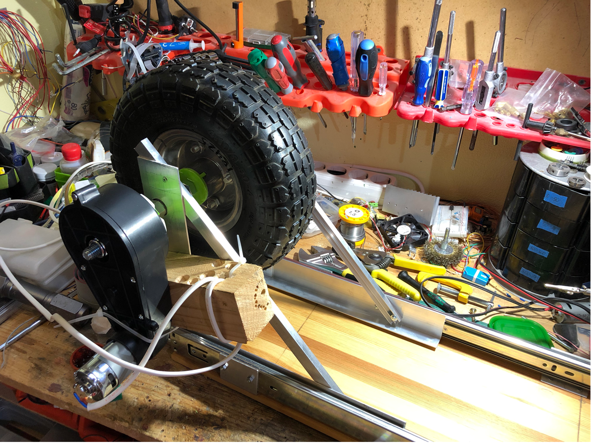 Ну что, мамкин инженер-конструктор репортинг ин. Сегодня произвел тест-драйв КОЛЕСНОГО ПРИВОДА. Но об этом чуть позже. Сначала я разобрал и сжег старый туалет (частично построенный из коробок от ракет для Града) За туалетом обнаружилась еще одна мини-помойка. Ящик с кусочками дерева, форточка от жигулей, три пластиковые крышки, часть магнитофона, рулон линолеума, две покрышки, два куска пенопласта, сумка женская и какой-то очень странный самодельный инструмент типа граблей, только гвозди в несколько рядов и не углом к ручке, а вдоль. Инструмент для того, чтобы колоть землю. Я не знаю, может он так червей копал. Пока горел толчок я врезал замок в калитку (и это оказалось значительно дольше, чем я планировал), но я справился, осталось только нарезать резьбу и закрепить его, да поставить декоративные накладки, но это уже когда доски придут. Наконец, я достал свое, так сказать, моноколесо, приделал его струбцинами к створке, достал аккум из шуруповерта и поехал кататься. По прикидкам композит на каждой воротине будет весить девяносто килограмм. По счастливому стечению обстоятельств я тоже вешу девяносто килограмм, поэтому я сел на середину воротины и воткнул провода в аккум. Изделие повело себя достойно. С пробуксовкой стартануло, поехало прям очень бодро. Про то, что у меня нет тормоза, я вспомнил слишком поздно, и меня по инерции впечатало спиной в калитку. С закрыванием ворот вышел небольшой казус: я не учел, что вся система движется не по прямой, а по окружности, и поэтому угол между колесом и створкой был ровно 90 градусов. При движении на открывание колесо просто подбуксовывало, как заднеприводная жига на парковке торгового центра. При движении на закрывание такого фокуса не происходило, и колесо хотело ехать вперед по касательной, в то время как створка тянула его вбок, по окружности. Все жесточайше перекашивалось и клинило. Прототип дополню клинышком для установки угла и пружиной для прижатия колеса к земле. Но вообще в целом я очень доволен первым результатом. Надеюсь, с ветровой нагрузкой тоже справится. Завтра обещают привезти композит. Если и правда привезут, все выходные будем с батей его прикручивать. Ах, да, бомжей так и не нашел. В домике не насрано, даже моток медного провода никто не украл.