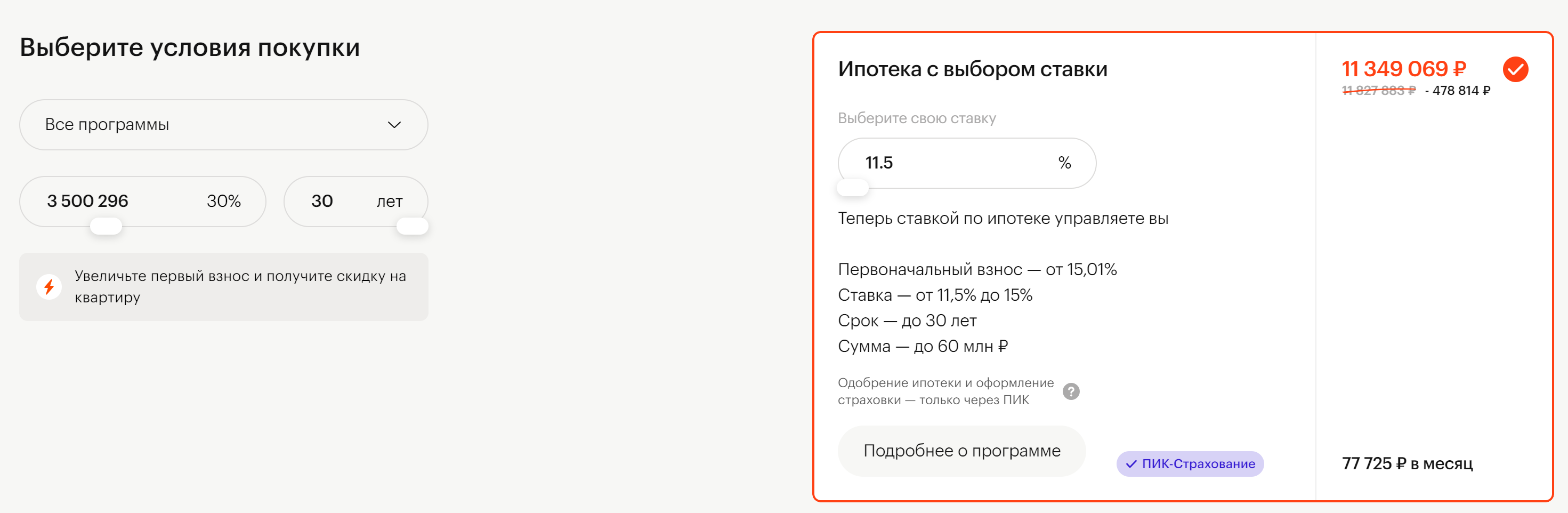 Есть фиксированная субсидированная ставка 11,5 - 15% на весь срок. Работает при взносе аж с 15%.
