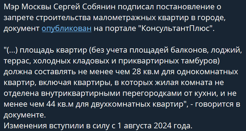 >Получается вообще грустная ситуация Если отбросить твои фантазии, то реальность уже в сентябре вместе семейной ипотеки, будут давать деньги потому что ставка Ахуеть какая, и денег будет хватать акурат на первый взнос самого дешёвого пиковейника, ну может 30% пв, но не под 6% а под 22% и программа вроде как есть и деньги тоже, но платежи будут по 80+ в месяц что сам понимаешь, дороха Все мутки с льготными ставками на 2 года прикроют вообще. И пизда новостройкам и застройщикам, как раз крупные будут терпеть и на жире пережидать мелочь сдохнет А вторичка вообще никого не ебет, она под 16% никому нахуй не нужна по таким ценам, под 22+ тем более, скидки по 30% за нал будут и дичайший боковик до лета 25 года в лучшем случае, целиком надеясь что ставку быстро снизят. Вон выше писали что уже просрочки растут