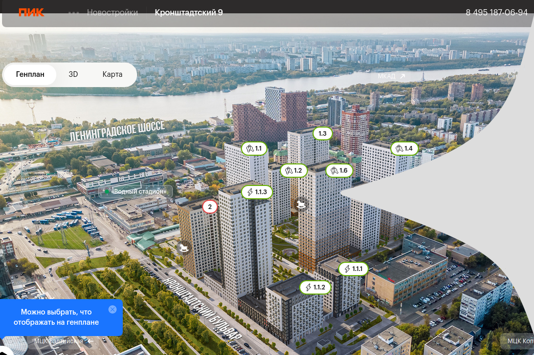 Начались продажи квартир в корпусах 1.1.1, 1.1.2 и 1.1.3 проекта «Кронштадтский 9». Жилой квартал возводится в Головинском районе Москвы, в 3 минутах пешком от метро «Водный стадион». Поездка на машине до Ленинградского шоссе займёт 2 минуты, до ТТК — 15 минут, а до МКАД — 12 минут.